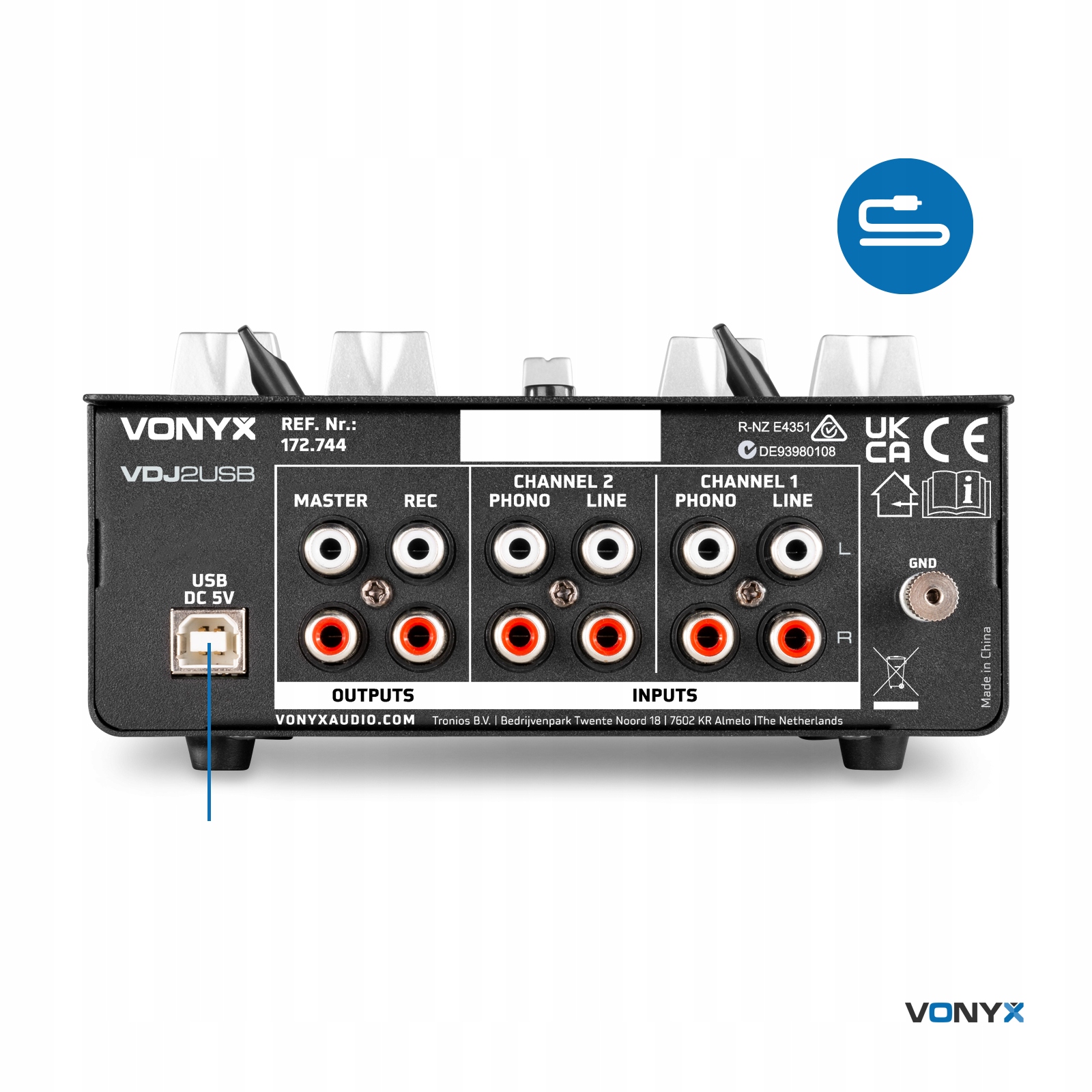 VDJ2USB — это многофункциональный DJ-микшер, предназначенный для прямого подключения к компьютеру, что значительно упрощает переход на цифровой формат. Этот 3-канальный стереомикшер оснащен интерфейсом USB (идентифицированным и адресуемым как внешняя звуковая карта), который позволяет одновременно записывать и воспроизводить цифровой звук с ПК или ноутбука. Микшер также имеет переключаемые линейные/фоно-входы и мастер-выходы/выходы для записи. Короче говоря, VDJ2USB — это портативная студия звукозаписи, сочетающая в себе все важные функции в компактном размере.