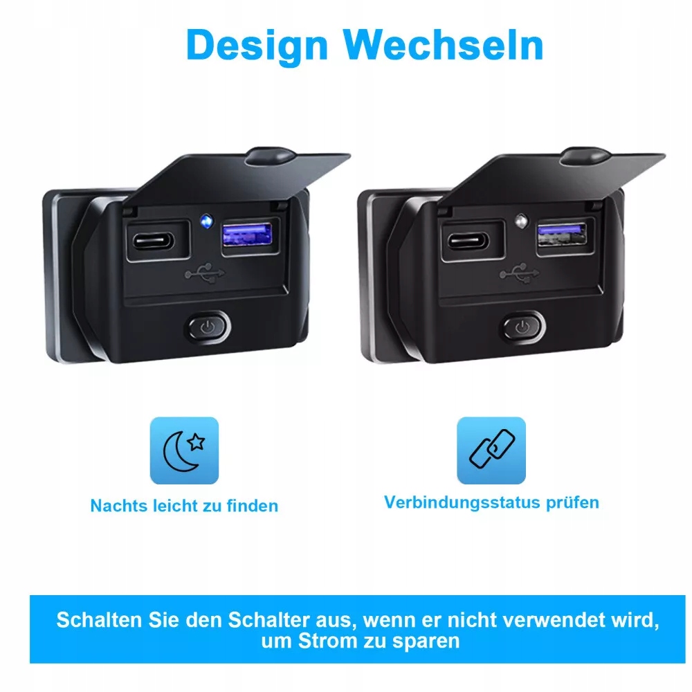 2x два -порт -зарядные сокты QC 3.0 + PD 3.0 с переключателем (Black + Blue Light)