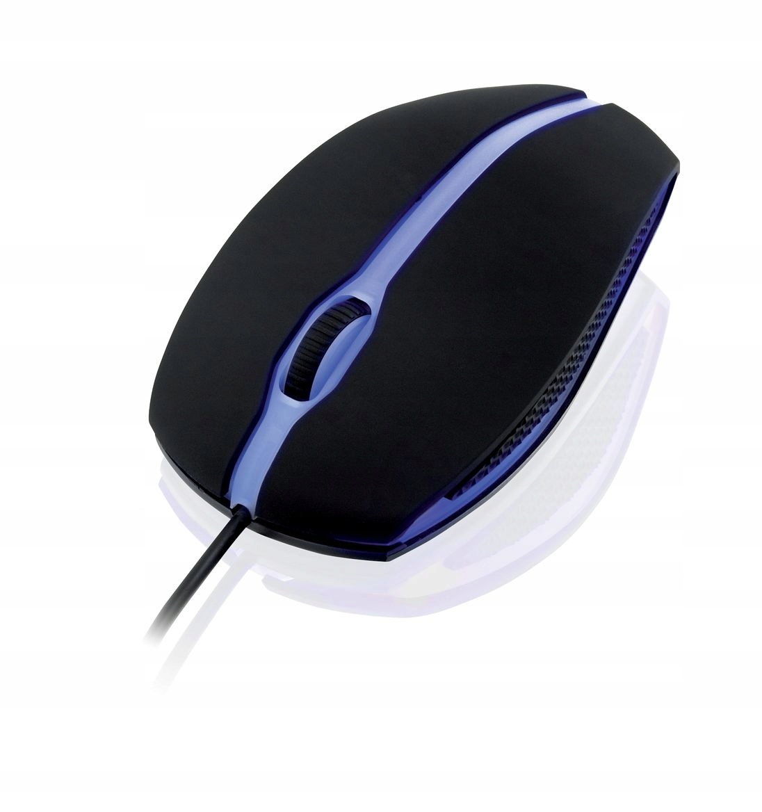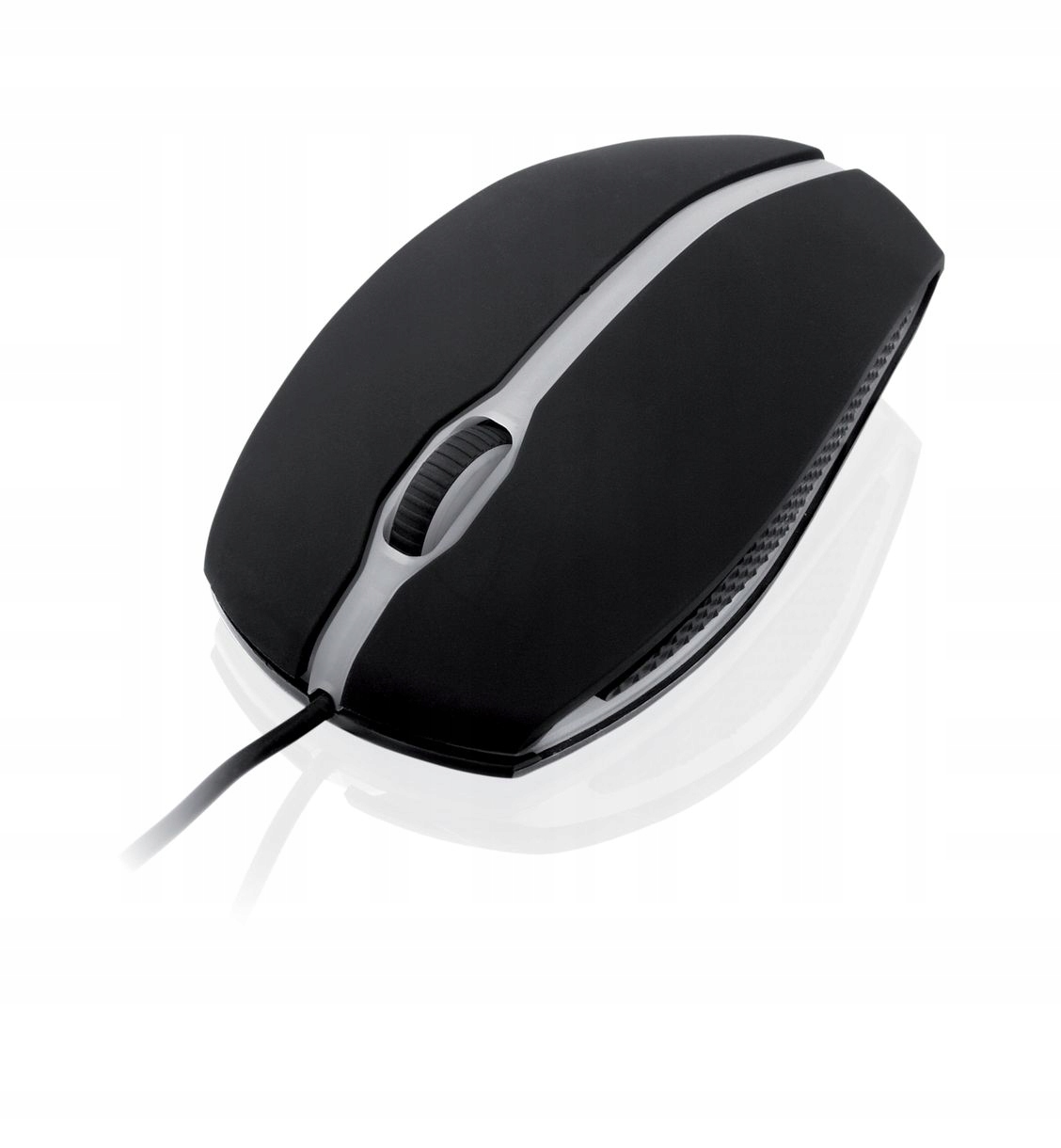 Черная оптическая мышь. Связь с компьютером осуществляется через USB-кабель. Мышь имеет колесо прокрутки и светодиодную подсветку.