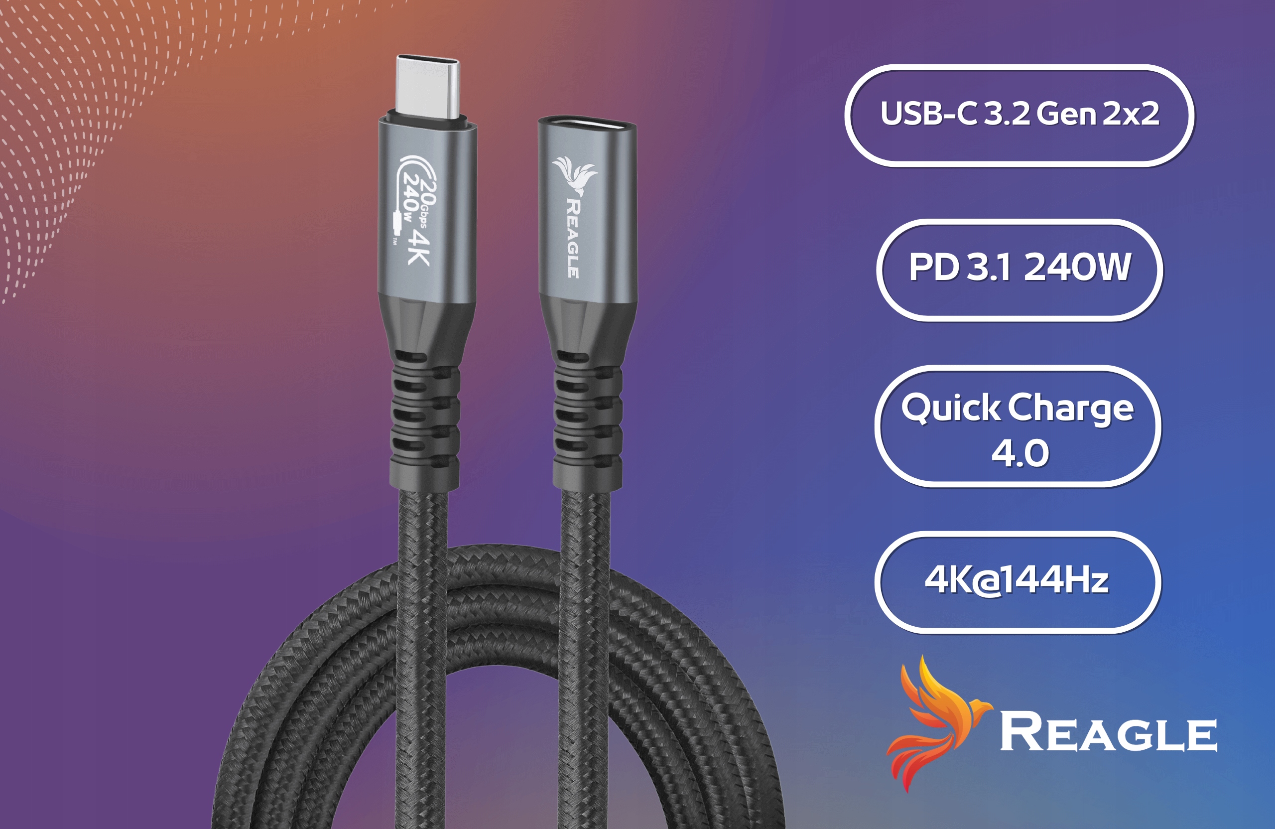 Model RPC500P от бренда Realle-это современный удлинитель USB-C с зарядной мощностью до 240 Вт, , который не только решает проблему слишком короткого кабеля, но также обеспечивает огромную производительность, скорость передачи до 20 ГБ/с и видеопользовательская поддержка 4K@144HZ.