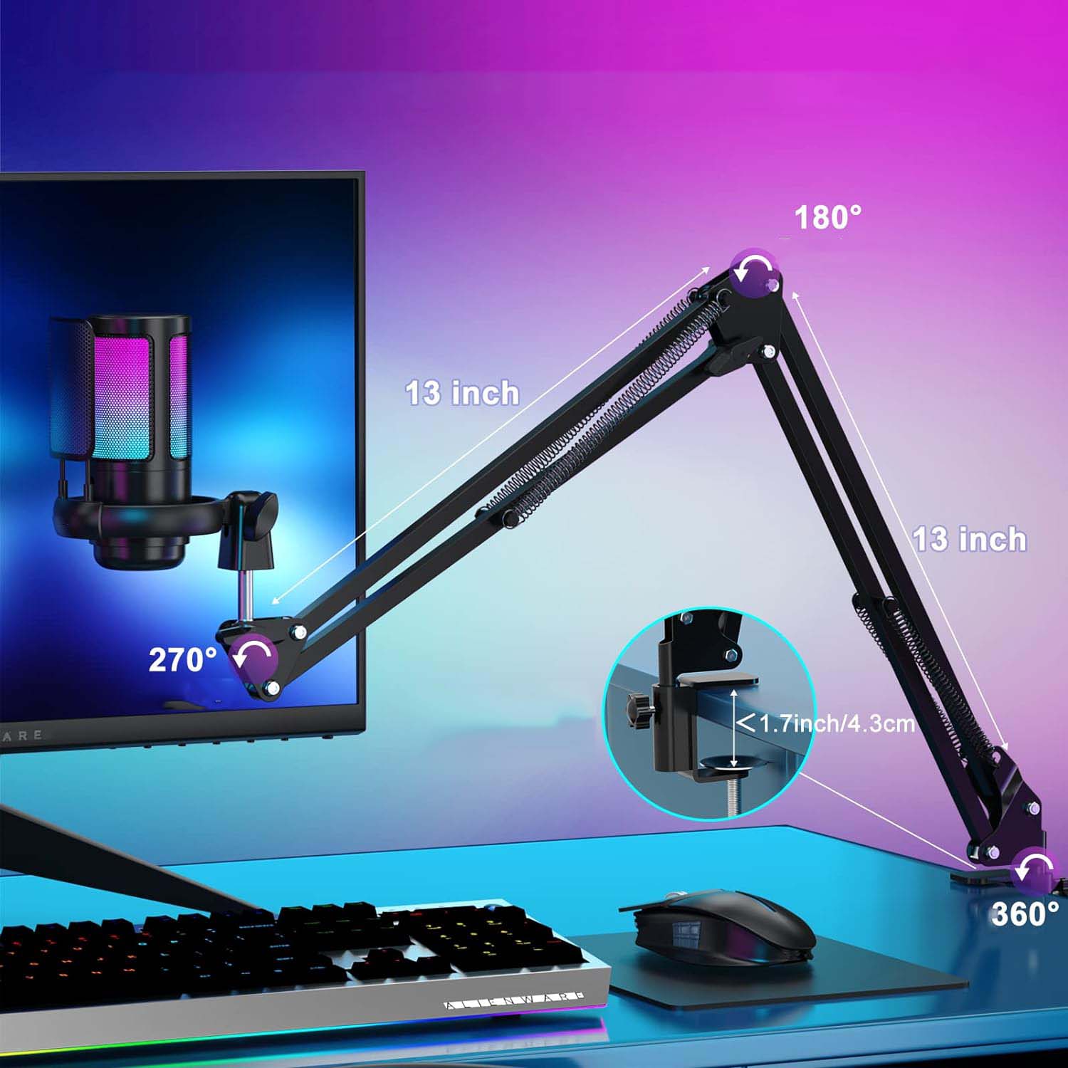 Существует кнопка молчания емкостных микрофонов в верхней части компьютера, которая очень практична. При игре и живой трансляции, независимо от того, что происходит, вы можете быстро успокоить микрофон подкаста одной рукой, чтобы защитить вашу конфиденциальность. Кроме того, разъем для наушников 3,5 мм в передней части набора микрофона USB для компьютера обеспечивает возможность мониторинга без задержек. Металлический бум достаточно долговечен, а C -зажим C идеально соответствует большинству 1,7 -дюймовых толстых столов. Губка, основанная на подставке для микрофона USB, защищает стол от царапин при вращающихся боковых винтах