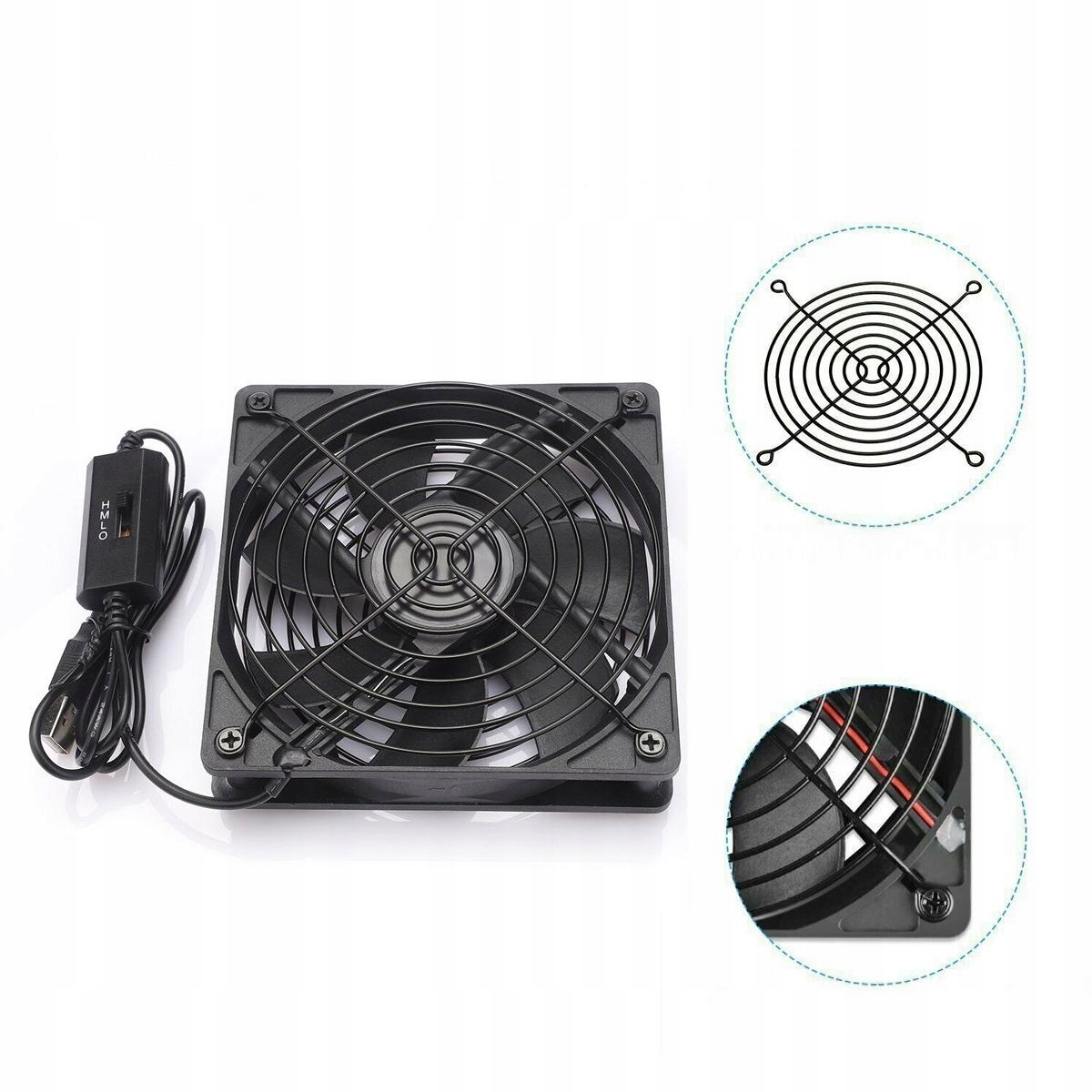 Черная металлическая решетка с обеих сторон вентиляторов корпуса защищает USB-кабель и ваши руки. USB-кабель износостойкий и его нелегко повредить.