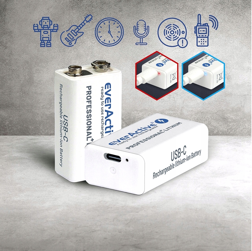 ➕ Суперфинг-батарея в размере батареи 9 В, изготовленной в литий-ионной технологии