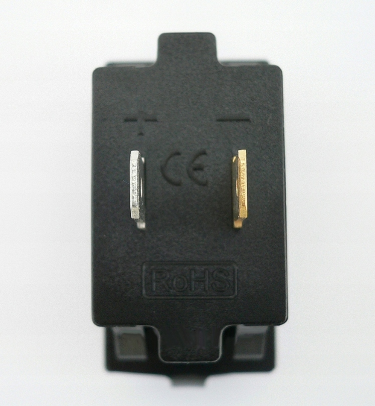 Сзади, возле разъемов, полярность обозначена «+» и «-»