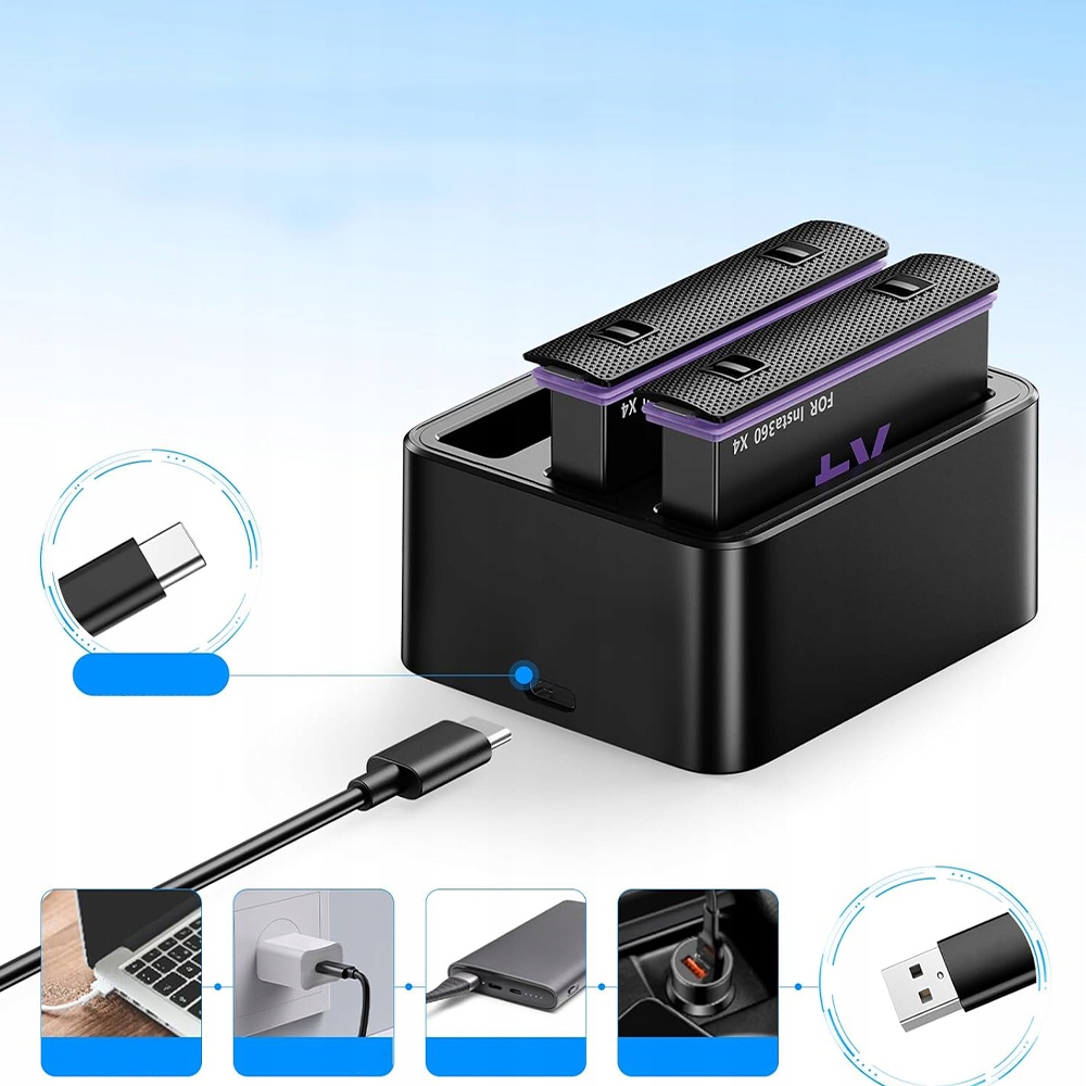 USB -зарядное устройство для аккумуляторной батареи 3 -кратной батареи для батарей Insta360 x4 + 2