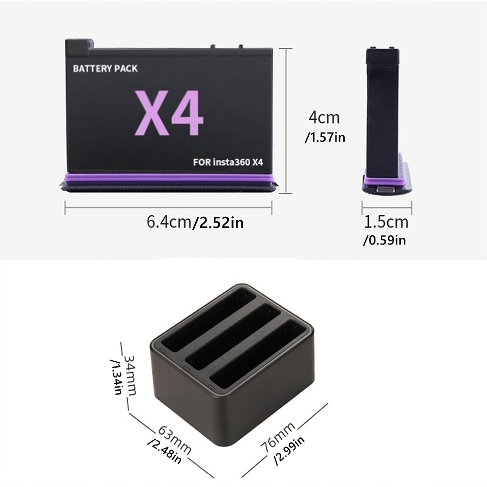 - Литий-ионная батарея с емкостью 2500 мАч , совместимый с инста-360x4 , ограниченное напряжение зарядки: 4,40 В;