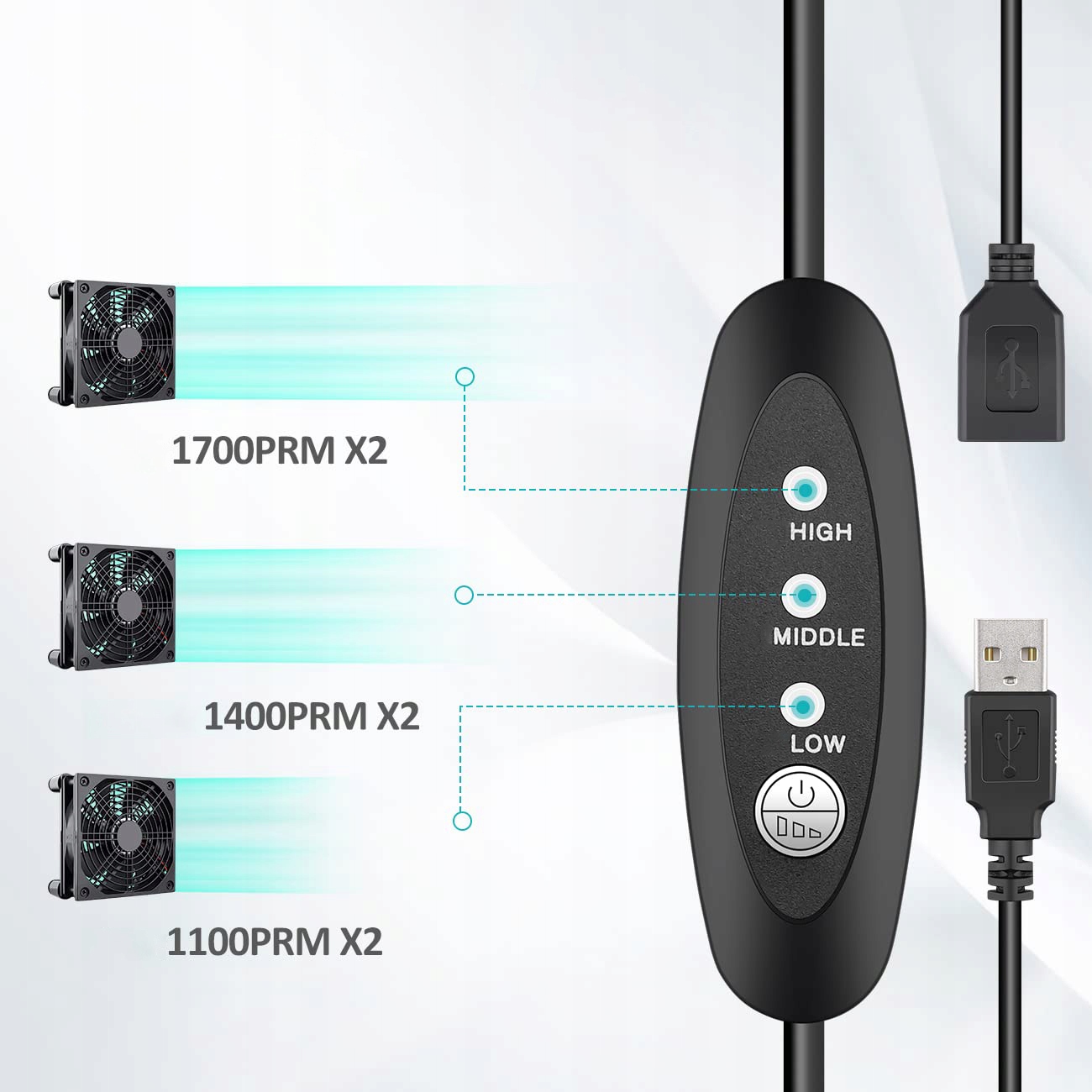USB Zasilany PC Router Podwójne wentylatory 120 mm