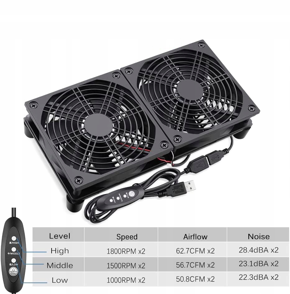 USB Zasilany PC Router Podwójne wentylatory 120 mm