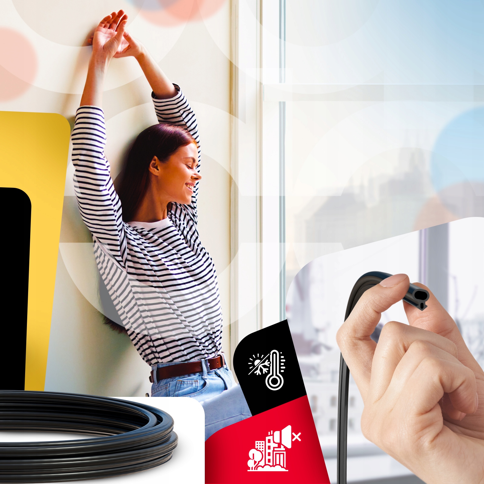 - Монтаж/способ применения: Плоский уплотнитель, надеваемый на оконную раму для улучшения герметичности между рамой и створкой. Используется в ситуациях, когда заводского уплотнителя (С-232, установленного на дверном полотне) недостаточно. Перед установкой проверьте, составляет ли зазор между рамой и створкой не менее 1,8 мм – это гарантирует правильную посадку и эффективную работу.