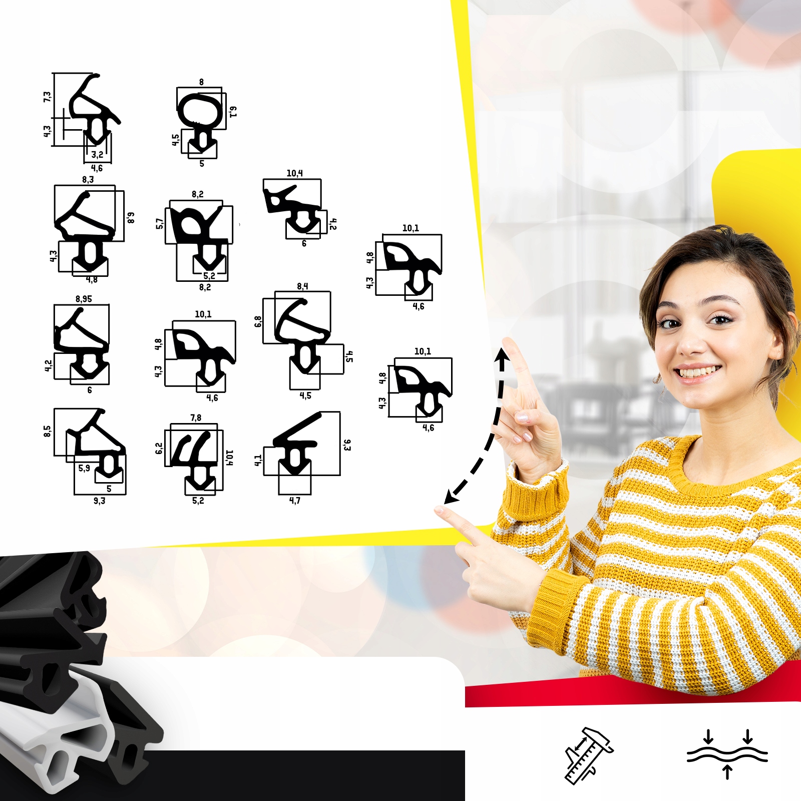 Чтобы выбрать подходящий профиль, сравните сечение вашего старого уплотнителя с новой моделью (или тщательно измерьте верхний профиль и вставной излив).