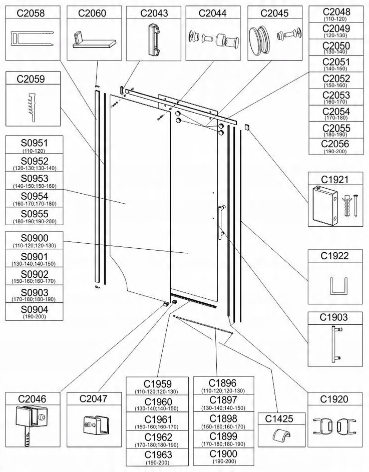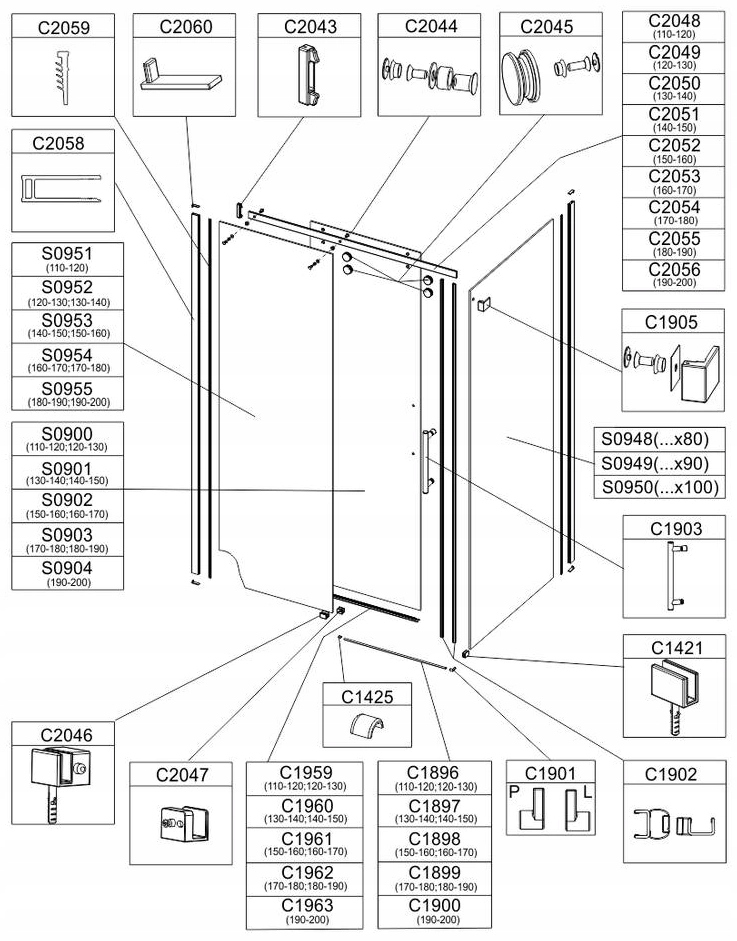 Ущільнювач карниза для розсувних дверей Sanplast ALTUS 660-C1960