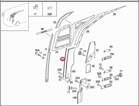 Уплотнитель сдвижного стекла Mercedes-Benz A0029874233