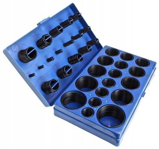 Большой универсальный набор уплотнительных колец, необходимый в каждом доме, мастерской и гараже . Устойчив к кислоте, бензину, теплу и маслу, а также к высокой температуре до +250°C. Набор находится в пластиковом чемоданчике, где каждому размеру соответствует свое точно прописанное место. Каждый размер обозначен соответствующим символом, благодаря прилагаемой таблице вы можете найти размеры каждого уплотнения.