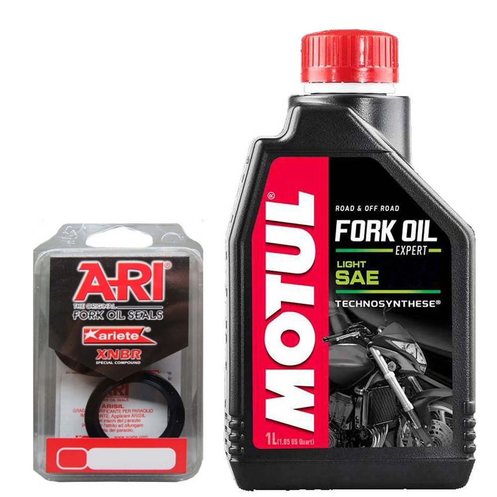 <ул>Комплект высшего качества ARIETE из двух уплотнителей передней подвески (телескопы, лаги). Материалом, из которого изготовлены герметики, является карбоксилированный бутадиен-нитриловый каучук, эластомер, известный как XNBR. Это химическое соединение обеспечивает уникальную стойкость к истиранию, высоким температурам и сложным смазочным материалам с различными присадками. В комплекте комплект прокладок Ariete и вилочное масло Motul.