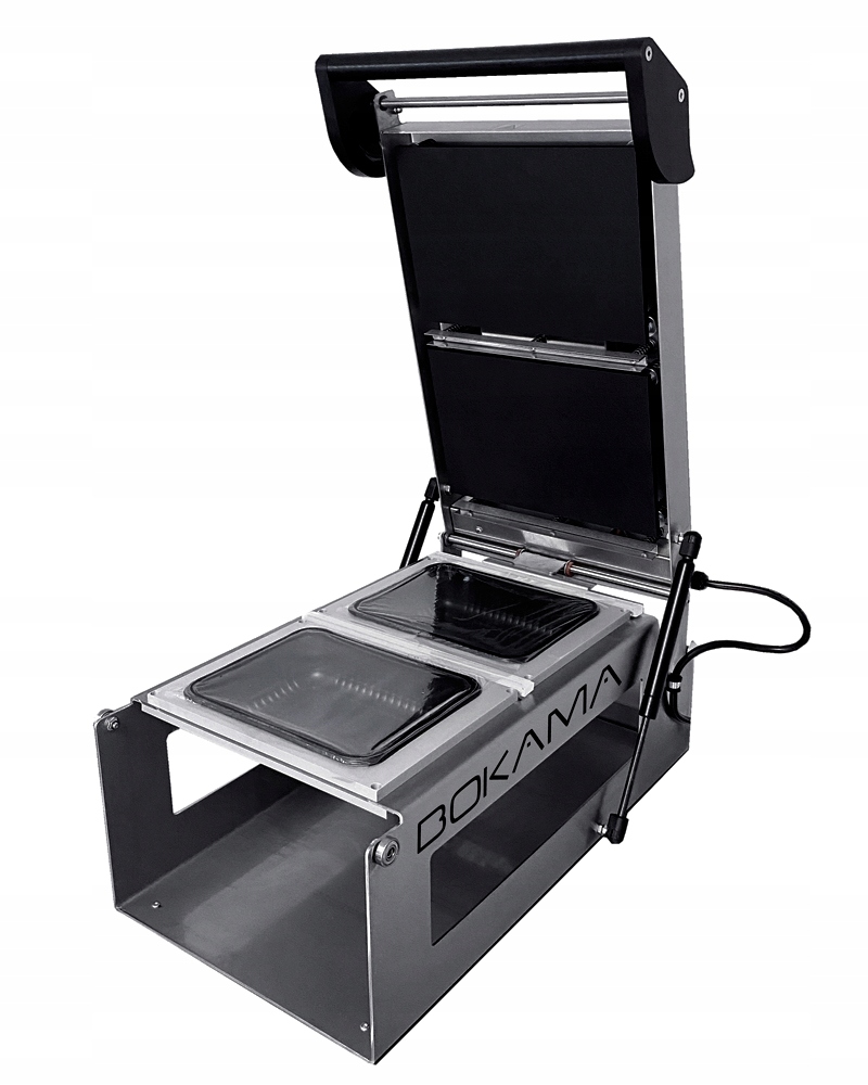 Профессиональный гастрономический сварочный аппарат для подносов. Идеальное устройство для кейтеринговых компаний и ресторанов, предлагающих еду на вынос. Позволяет упаковывать твердые, жидкие и сыпучие продукты. Удобная упаковка готовых пищевых продуктов для транспортировки. Возможность использования различных типов и форм лотков.