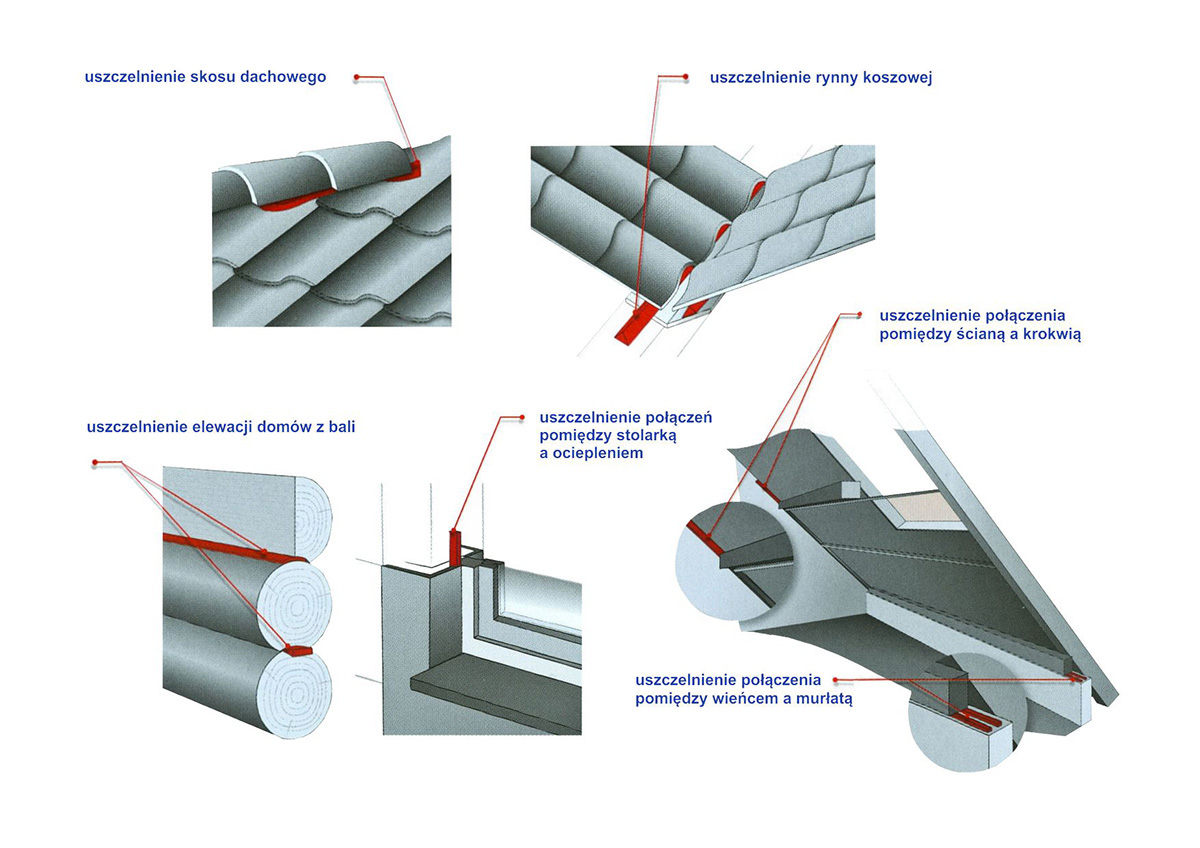 - кровельная герметизация (герметизация скатов, ендов и коньков крыши, особенно рекомендуется для керамических покрытий,