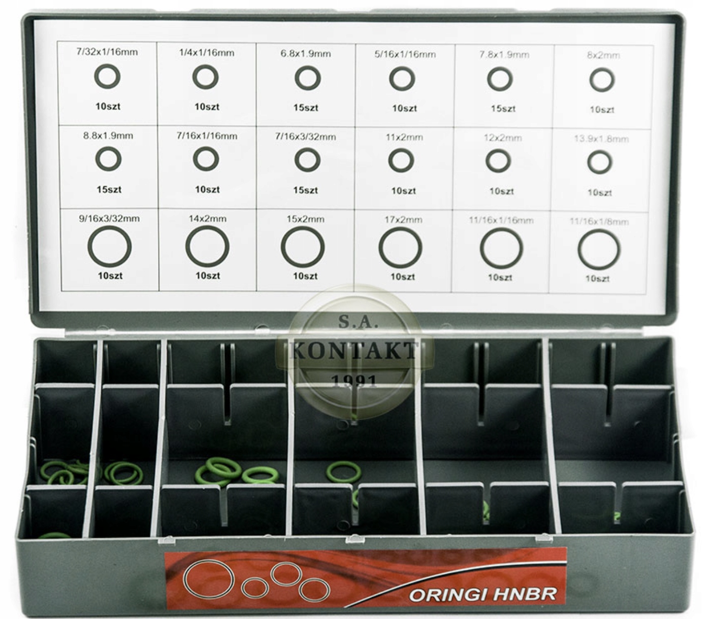 В комплект входят HNBR и NBR SAE, а также метрические уплотнительные кольца. Уплотнительные кольца из эластомера NBR, широко известного как искусственный каучук, прекрасно выполняют функцию уплотнения и устойчивы ко многим химическим соединениям. Однако уплотнительные кольца из эластомера HNBR, то есть гидрогенизированного бутадиен-акрилонитрильного каучука, более устойчивы к химическим соединениям и высоким температурам, чем уплотнительные кольца из эластомера NBR.
