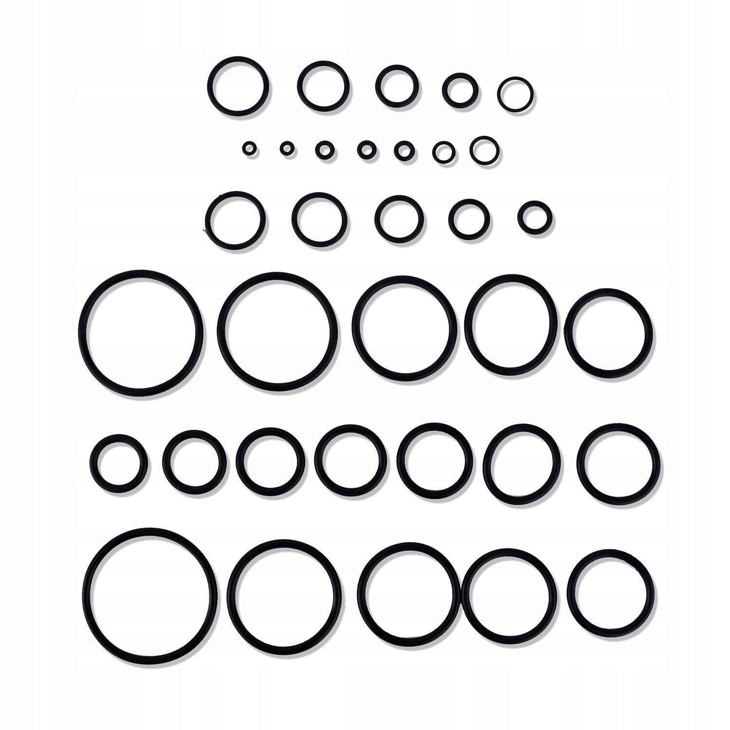Набор очень прочных уплотнительных колец, устойчивых к: моторным маслам, трансформаторным маслам, мазутам, смазкам, гидравлическим жидкостям, алифатическим углеводородам, таким как: пропан, бутан, бензин, спирты, водомасляные эмульсии типа HSA, HSB, смеси полигликоля с водой типа ГСК, водно-солевые растворы, разбавленные кислоты и основания при низких температурах, вода до 60°С.
