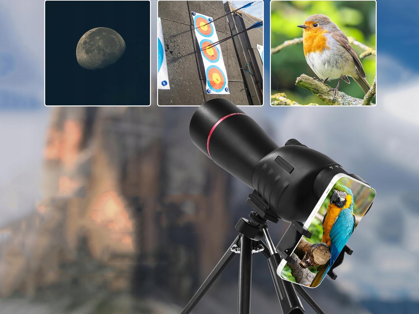 Этот телескоп ED идеально подходит для стрельбы по цели, наблюдения за птицами, охотой, стрельбой из лука, блуждания, ландшафтами, путешествиям и другими мероприятиями на свежем воздухе.