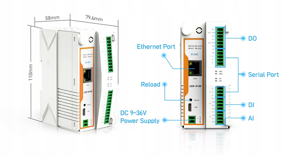 USR-M100 имеет уникальную механическую конструкцию, которая сокращает время, необходимое для установки и снятия, упрощая развертывание и обслуживание. Кроме того, USR-M100 поддерживает протокол Master Modbus RTU для получения последовательных данных с места и поддерживает преобразование протоколов OT/IT.
