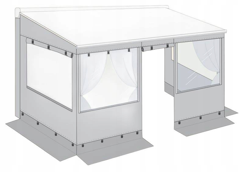 Боковые панели с рулонными шторами и москитной сеткой.