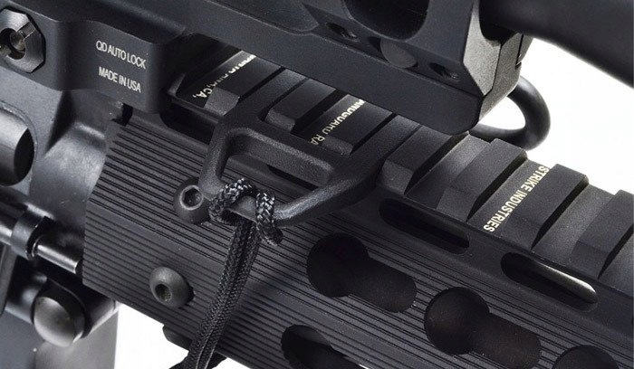 Низкопрофильное подвесное крепление Ambush Sling Loop, соответствующее стандарту MIL STD 1913, на рейке. Изготовлено компанией Strike Industries.