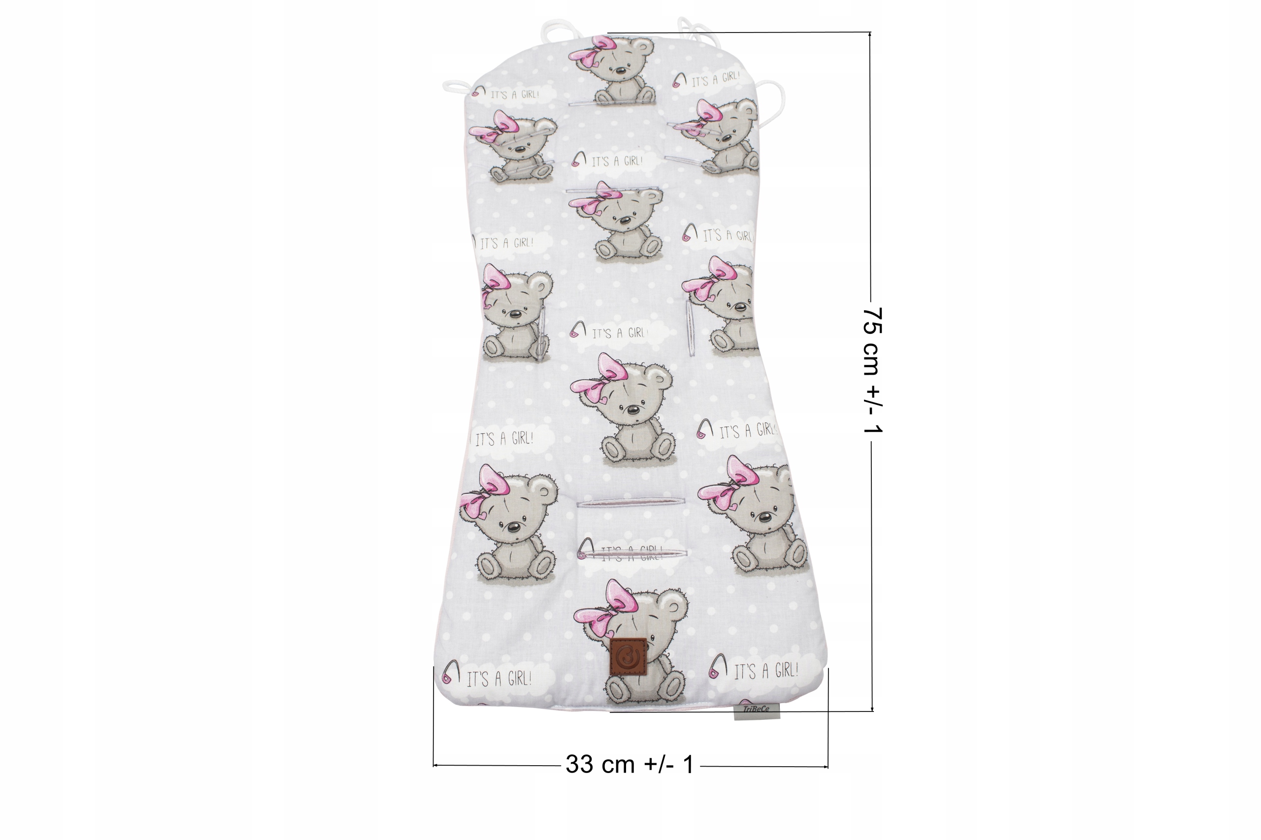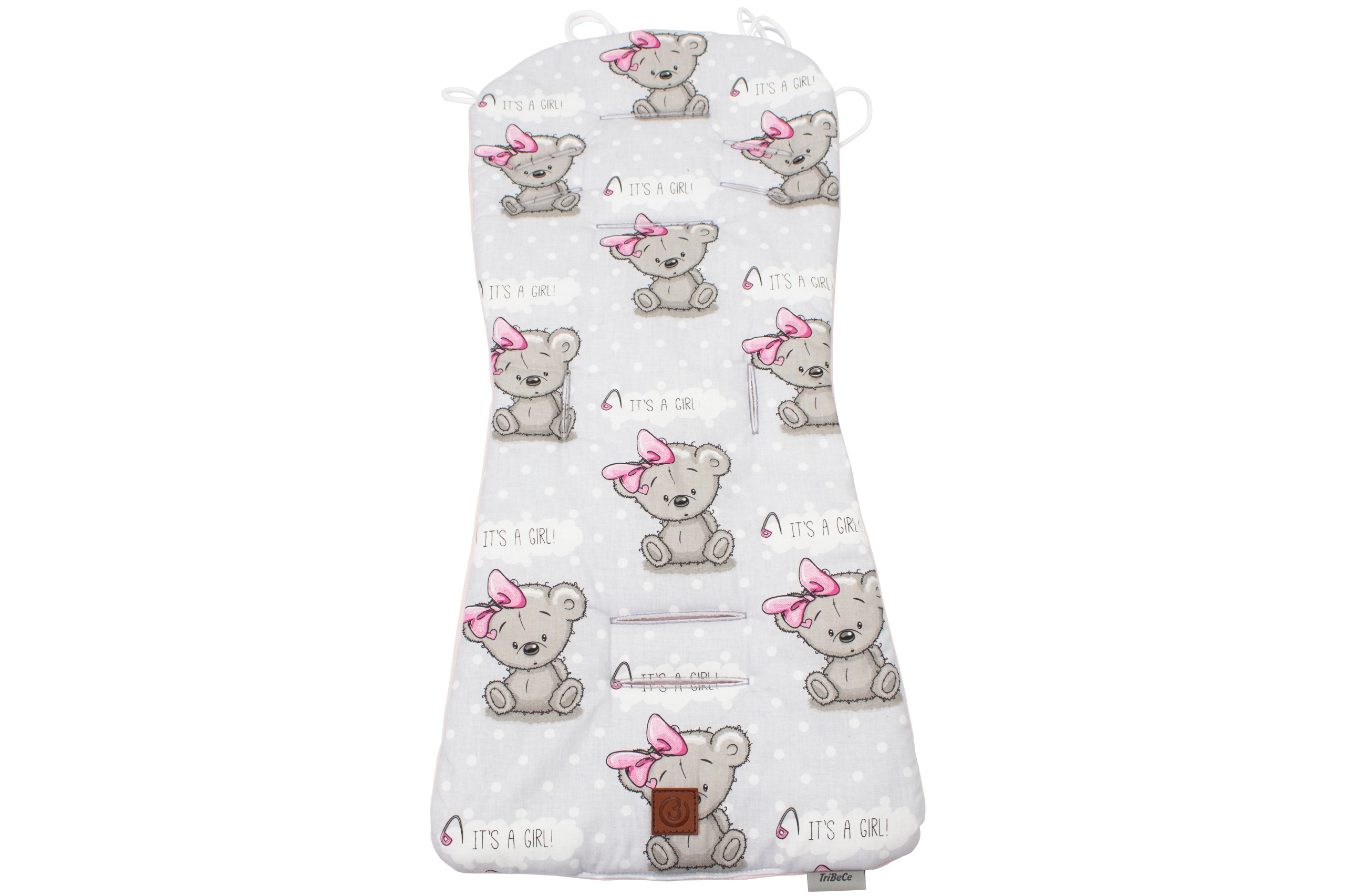 B-Вшитые завязки позволяют прикрепить вставку к спинке коляски, что предотвращает соскальзывание вставки с сиденья.