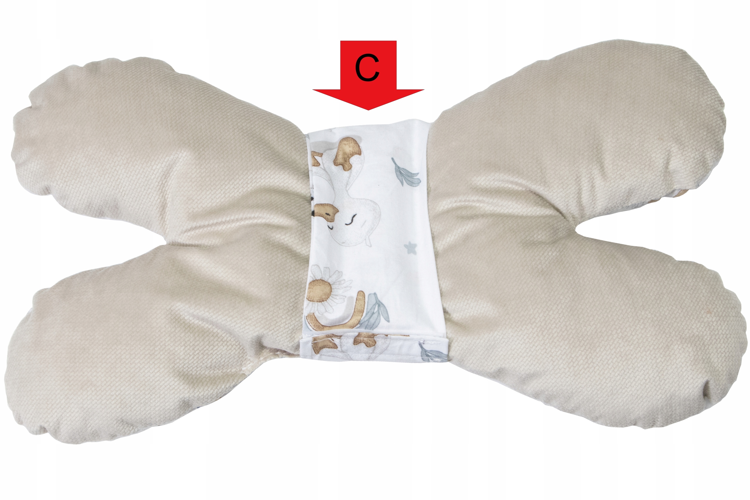 C-Подушку-бабочку можно прикрепить или отсоединить от вставки с помощью липучки.
