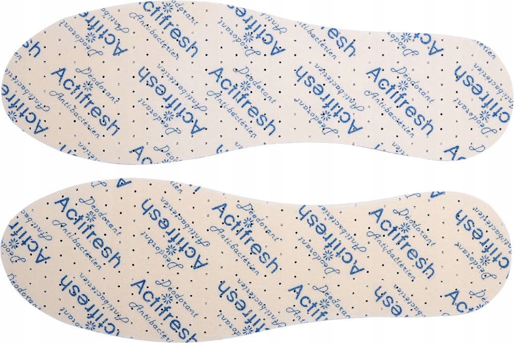 Антибактериальная стелька с стойким ароматом свежей мяты. Actifresh состоит из трех слоев: хлопчатобумажной внешней ткани, латексной пены с антибактериальным веществом, предотвращающей рост микроорганизмов во влажной и теплой среде обуви, и противоскользящей латексной пены с ромбовидной текстурой. Перфорация обеспечивает циркуляцию воздуха, что дает ощущение комфорта.