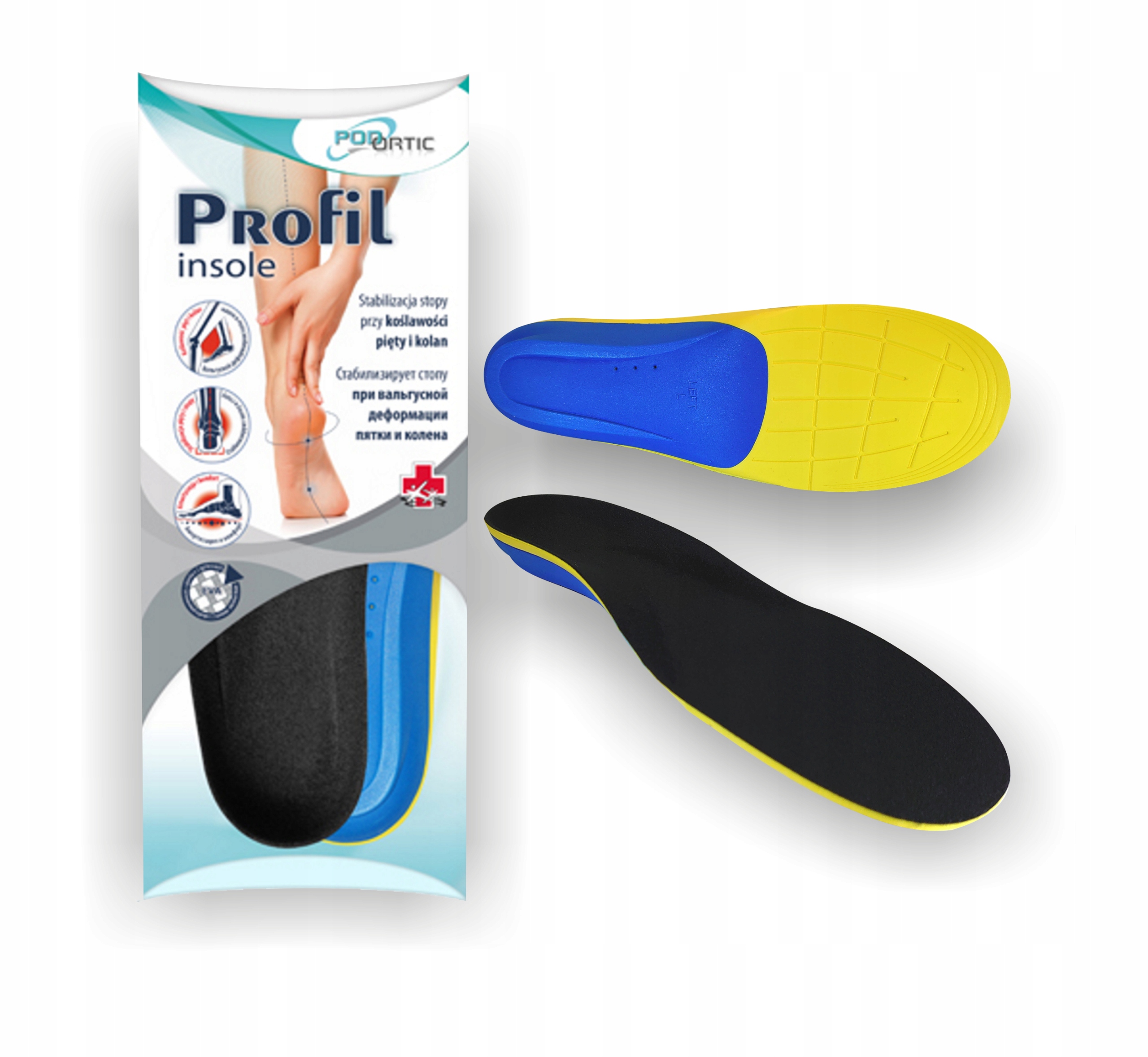 Современные ортопедические стельки Podortic Profil Insole – это медицинский продукт высочайшего качества от польской компании IRR. Профилированные стельки с глубоким пяточным каналом изготовлены из двух слоев пенопласта разной плотности, покрытых бархатным материалом. Они прочно стабилизируют пятку и поддерживают правильное положение стопы при ходьбе. Кроме того, они профилируют заднюю и среднюю части стопы и сильно супинируют пятку. Приподнятый медиальный свод поддерживает свод стопы, снижая нагрузку при ходьбе. Благодаря канальному строению они защищают голеностопный сустав от вальгусной деформации голеностопного сустава, предотвращают вальгусную деформацию пятки и коленного сустава. Они правильно позиционируют плосковальгусные стопы. Они поглощают микроудары и стимулируют мышцы и связки к динамичной работе. Рекомендуется для профилактической, ортопедической и стандартной обуви.