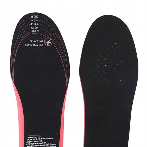 - СПЕЦИФИКАЦИЯ – материал: пеноуглеродное волокно; универсальный размер: 41-46; температура нагрева: макс. 55℃; питание: USB; чистка влажной губкой; высушить перед использованием; водонепроницаемость: да; продолжительность нагрева: 3-5 мин; регулировка размера: да; выходное напряжение: 5 В; Входное напряжение адаптера: 6 В; размеры: 28,5/9,5 см; толщина: 0,5 см; вес: 0,081 кг; вес в упаковке: 0,088 кг.