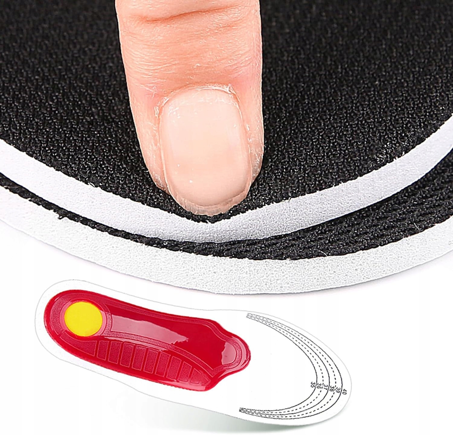 - Шаг 1. Поместите амортизирующие и мягкие стельки в обувь тканевой стороной вверх.