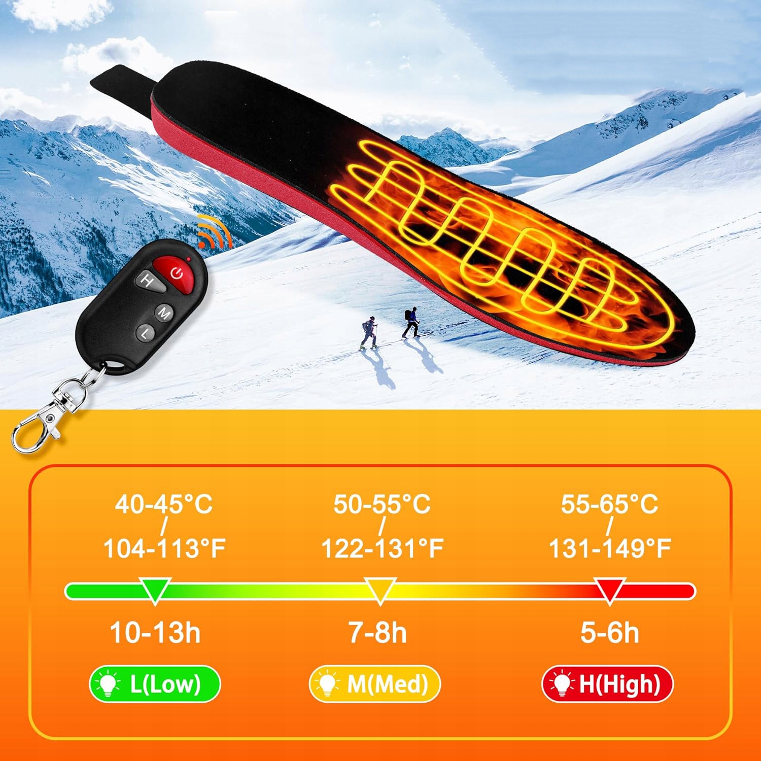🔥【Широкое применение】 Согревает стельку, поэтому вы можете решить проблему с ногами в холодную погоду и сохраняет ноги в тепле всю зиму, не потея. Он имеет широкий спектр применения, включая множество зимних видов деятельности, таких как охота, катание на лыжах, езда на мотоцикле, альпинизм или пеший туризм. Мы убеждены, что стелька с подогревом станет для вас идеальным выбором.