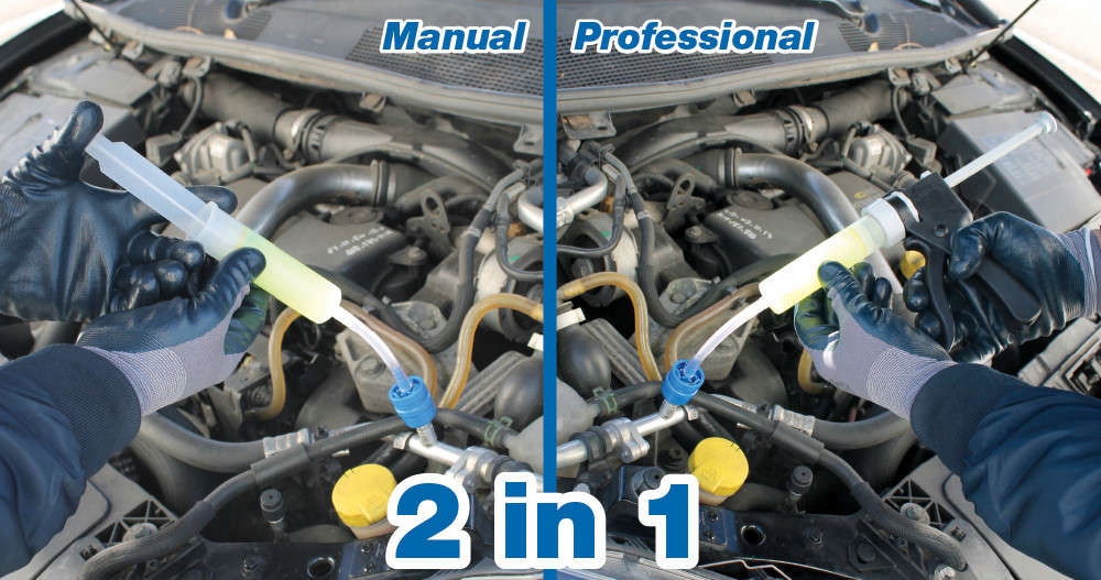 После введения в систему кондиционирования препарат смешивается с хладагентом и масло. При обнаружении небольшой утечки, ранее обнаруженной с помощью азота или другого метода, REVOPRO реагирует с внешней влагой, создавая покрытие, которое герметизирует эту микроутечку. REVOPRO также содержит вещества, удаляющие влагу из системы кондиционирования, а также консерванты для уплотнителей и резиновых шлангов. Незаменимый продукт, который решает внутренние проблемы при небольших утечках хладагента, возникающих в резиновых и металлических деталях автомобильных кондиционеров. Доза 30 мл (1 унция) для автомобильных кондиционеров с максимальным объемом 1 кг газообразного хладагента. Перманентно устраняет небольшие утечки хладагента, возникающие в резиновых и металлических трубках системы кондиционирования. Это постоянный герметик. Идеально подходит для профилактического использования. Не содержит полимеров. Не повреждает компрессор или рекуперационную станцию. Не содержит полимеров. Не повреждает компоненты кондиционера и сервисные устройства. Не засоряет сервисные клапаны. Смазывает систему и помогает предотвратить утечки. Совместим с системами R134a и 1234yf. Упаковано в блистер. Версия с двумя переходниками низкого давления для хладагентов R134a и 1234yf.