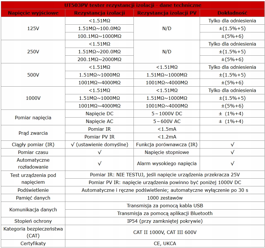 UT503PV Цифровой ЖК -изоляционную изоляцию Тестер 0,125 МОм - 4000 МОм 6xAA Uni -t h2>