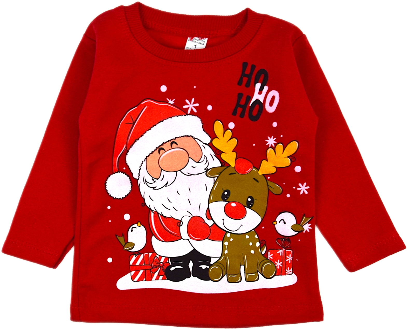 <ул>Детская блузка из хлопка. Кофточка слегка утеплена пухом. идеально подходит для Дня Святого Николая или Рождества. На кофточке аппликация Деда Мороза и оленей.