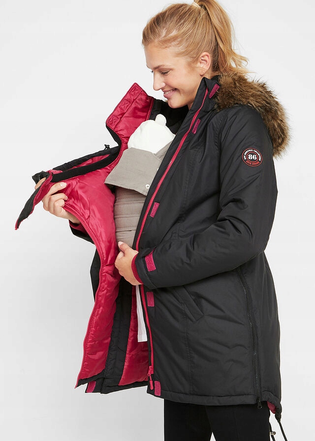 Куртка с детской вставкой на молнии, которую можно пристегнуть/отстегнуть спереди. Идеальная куртка для беременности/послеродового периода. Вставка не является переноской.
