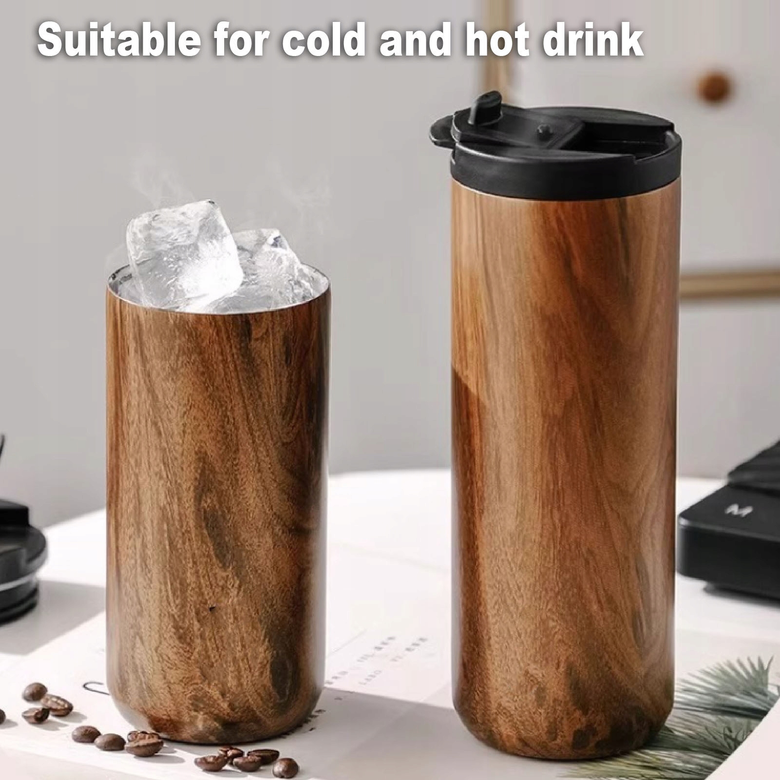 1. Ретро и стильно: с ретро -деревянным узором, эта изолированная кружка для путешествий из нержавеющей стали является стильным и практичным выбором как для внутреннего, так и для внешнего использования, добавив роскошный акцент в питье.