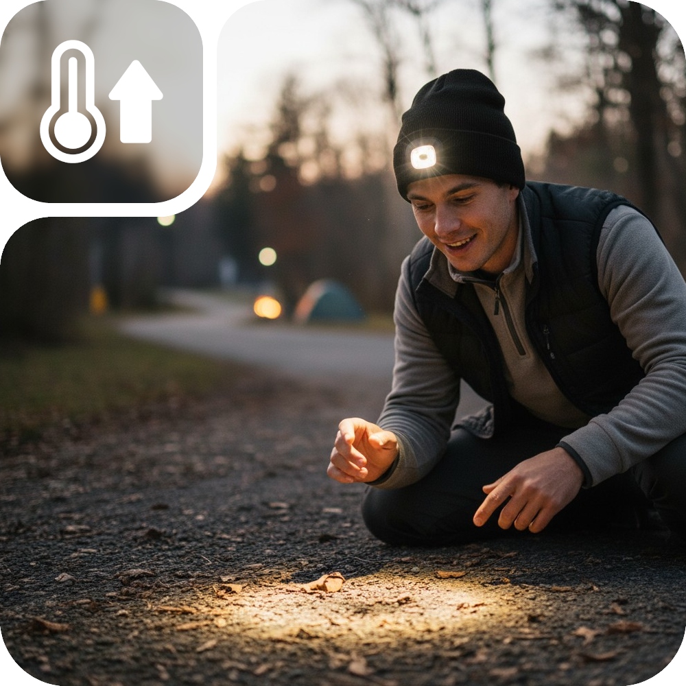 ИЗОЛИРОВАННАЯ ЗИМНЯЯ ШАПКА СО СВЕТОДИОДНЫМ ФОНАРЕМ, ЧЕРНАЯ USB