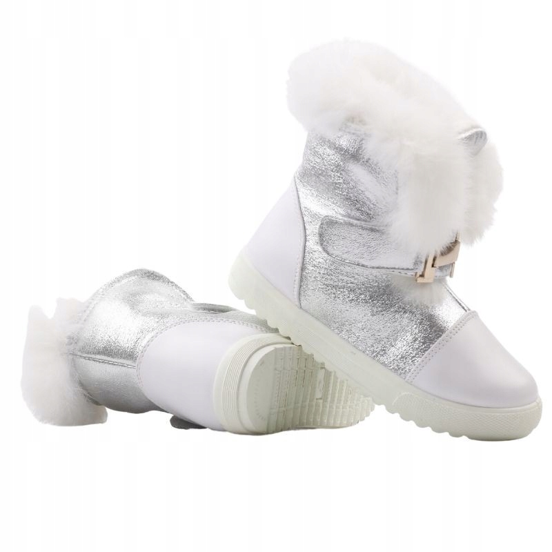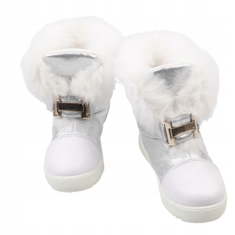 Снегоступы для девочек на плоской подошве. Верхняя часть достигает икры. Изготовлен из экокожи в сочетании с тканью. Застегивается спереди на липучку с декоративной пряжкой. Верхняя часть голенища и язычок украшены вставками из мягкого меха. Изолированная модель. Очаровательные и удобные сапожки непременно найдут свое место в детском гардеробе.