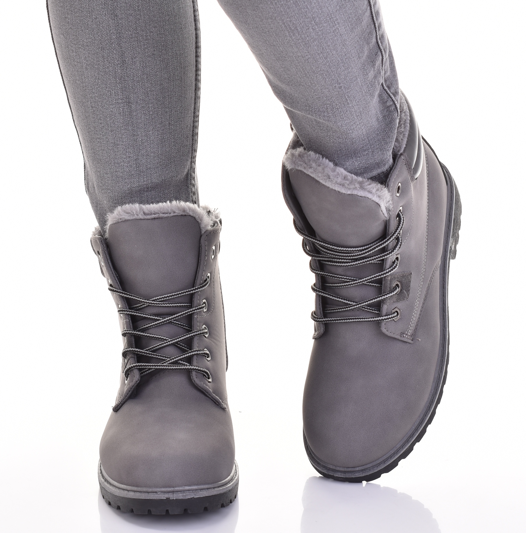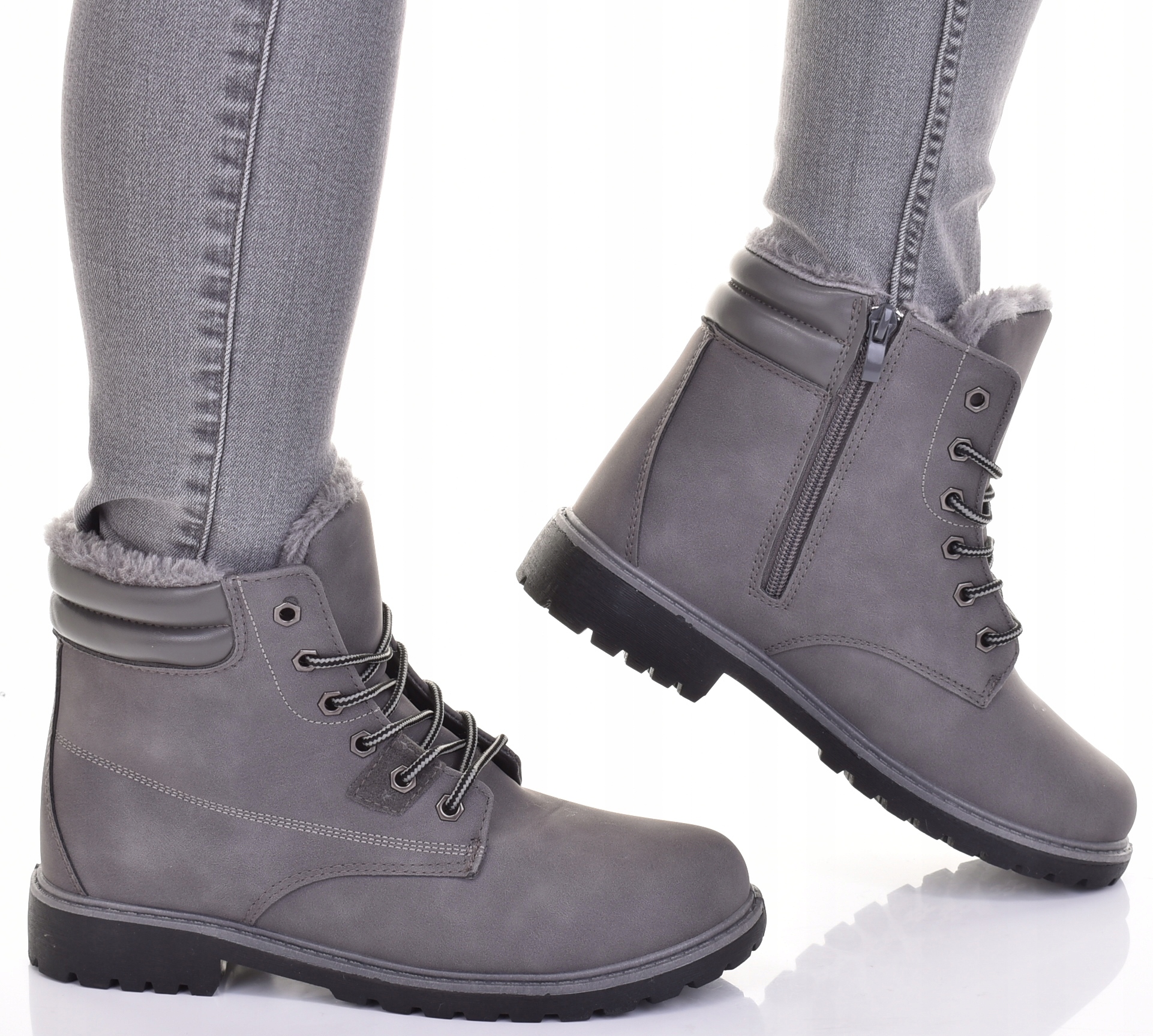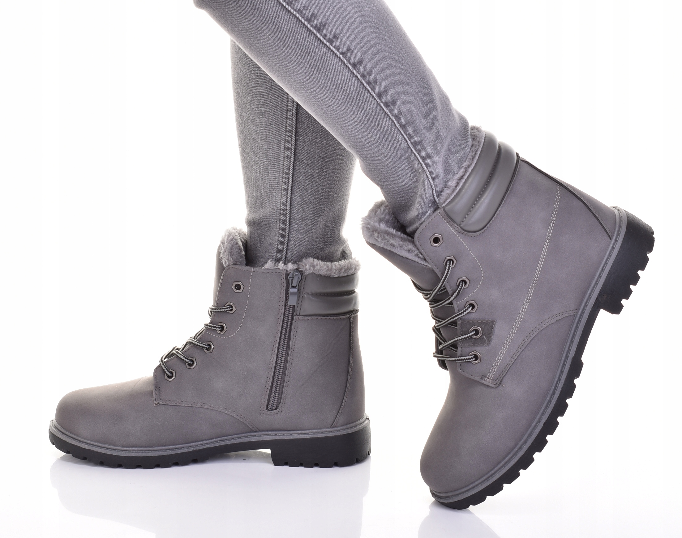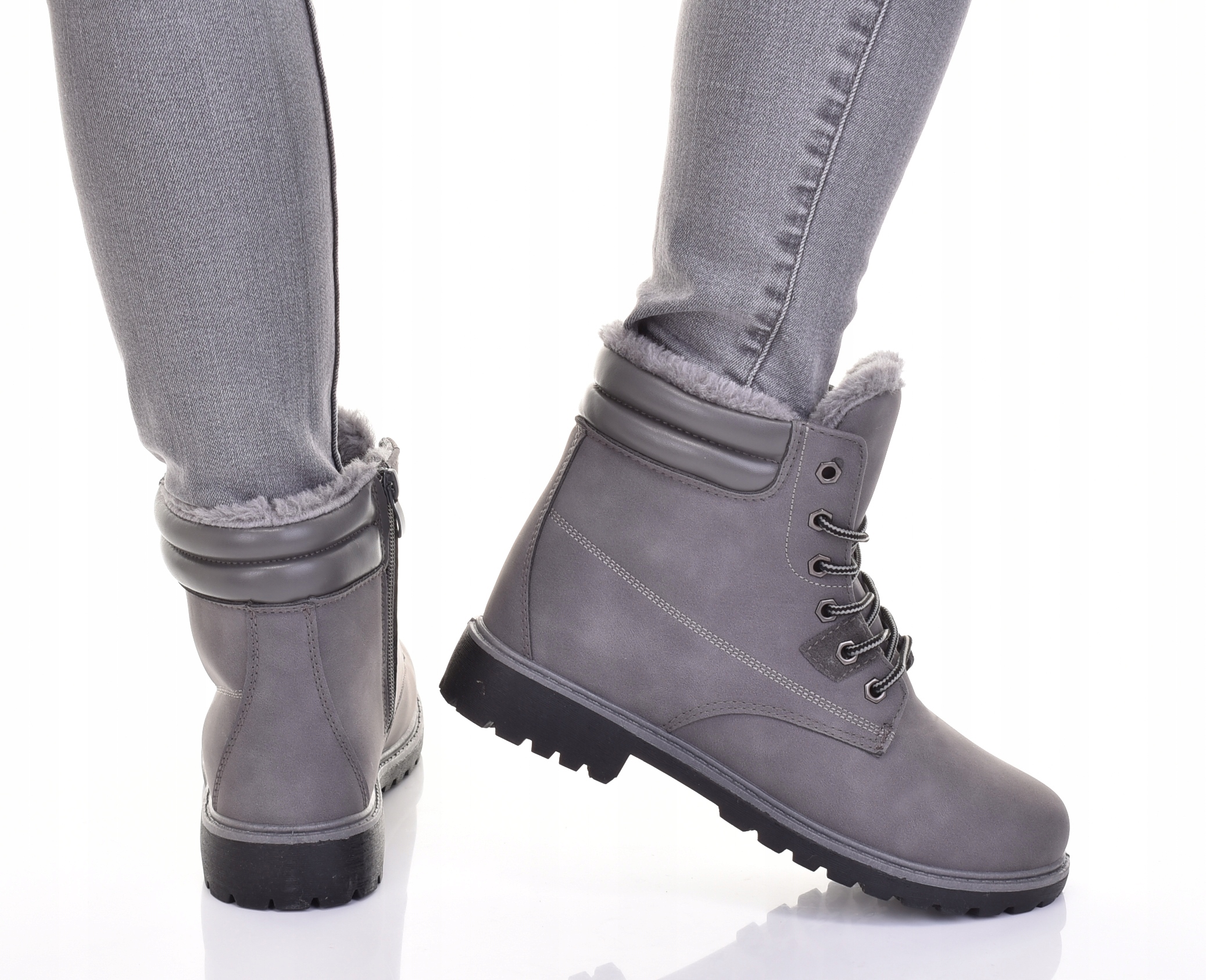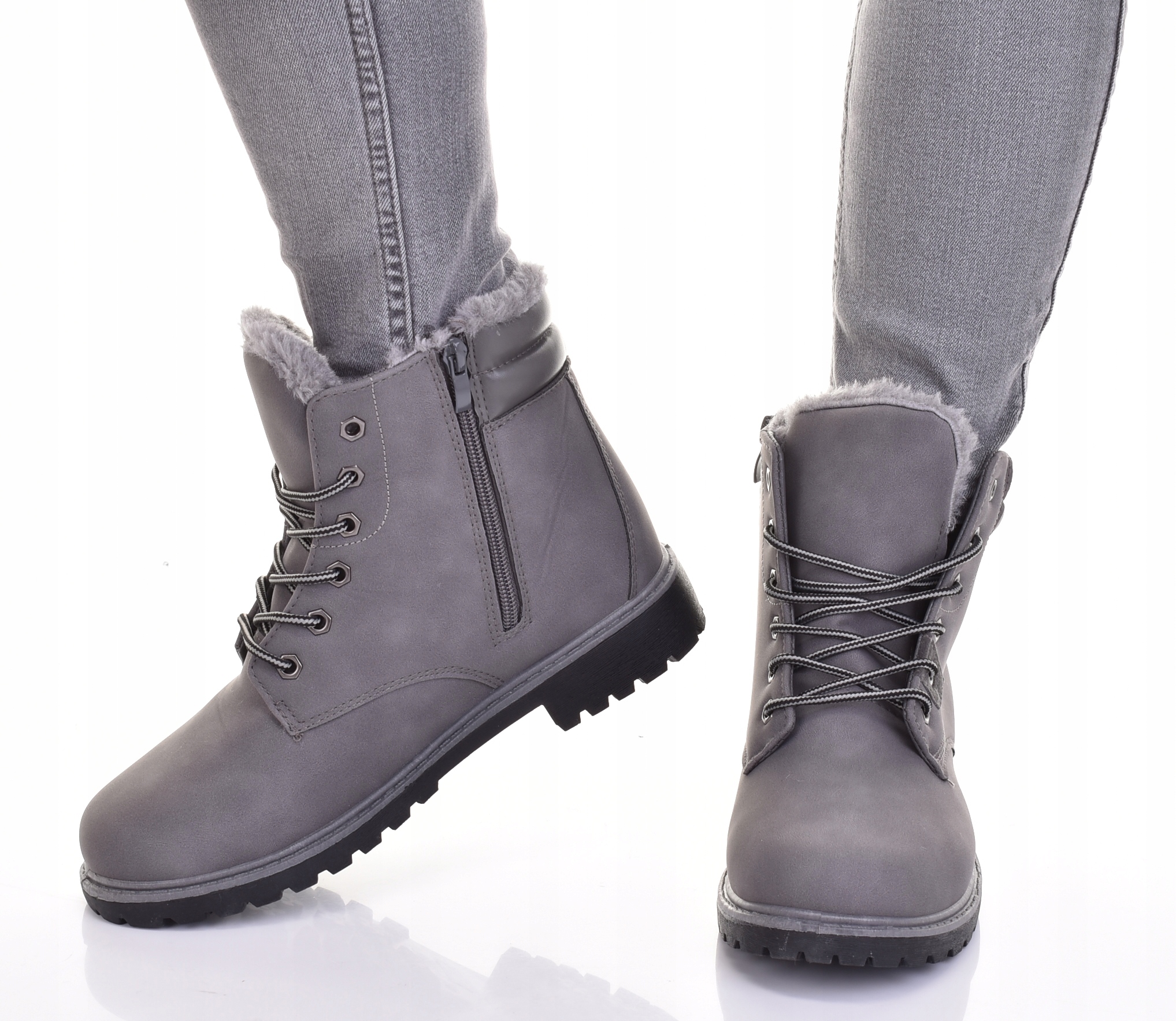 УТЕПЛЕННЫЕ ЖЕНСКИЕ СНЕЖНЫЕ БОТИНКИ ЗИМНИЕ ТРАПЕРЫ ОБУВЬ С МЕХОМ СЕРЫЕ