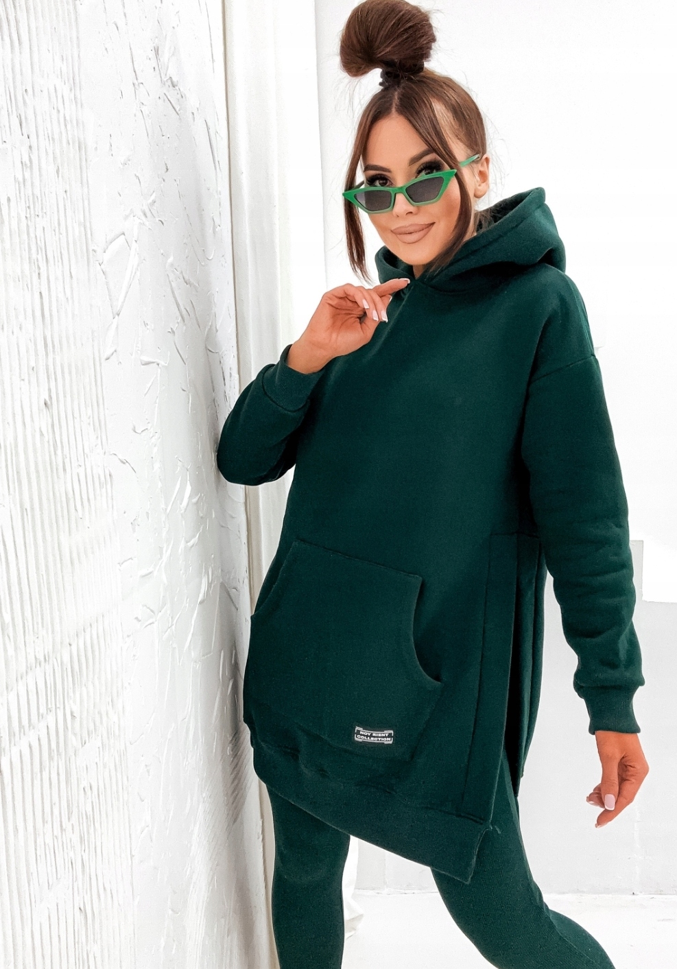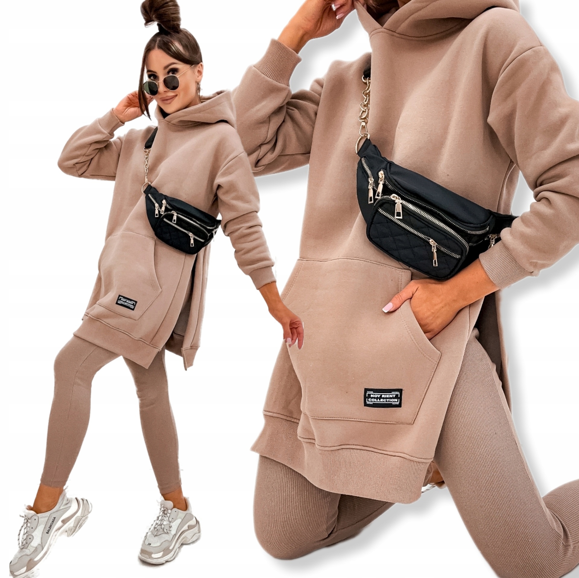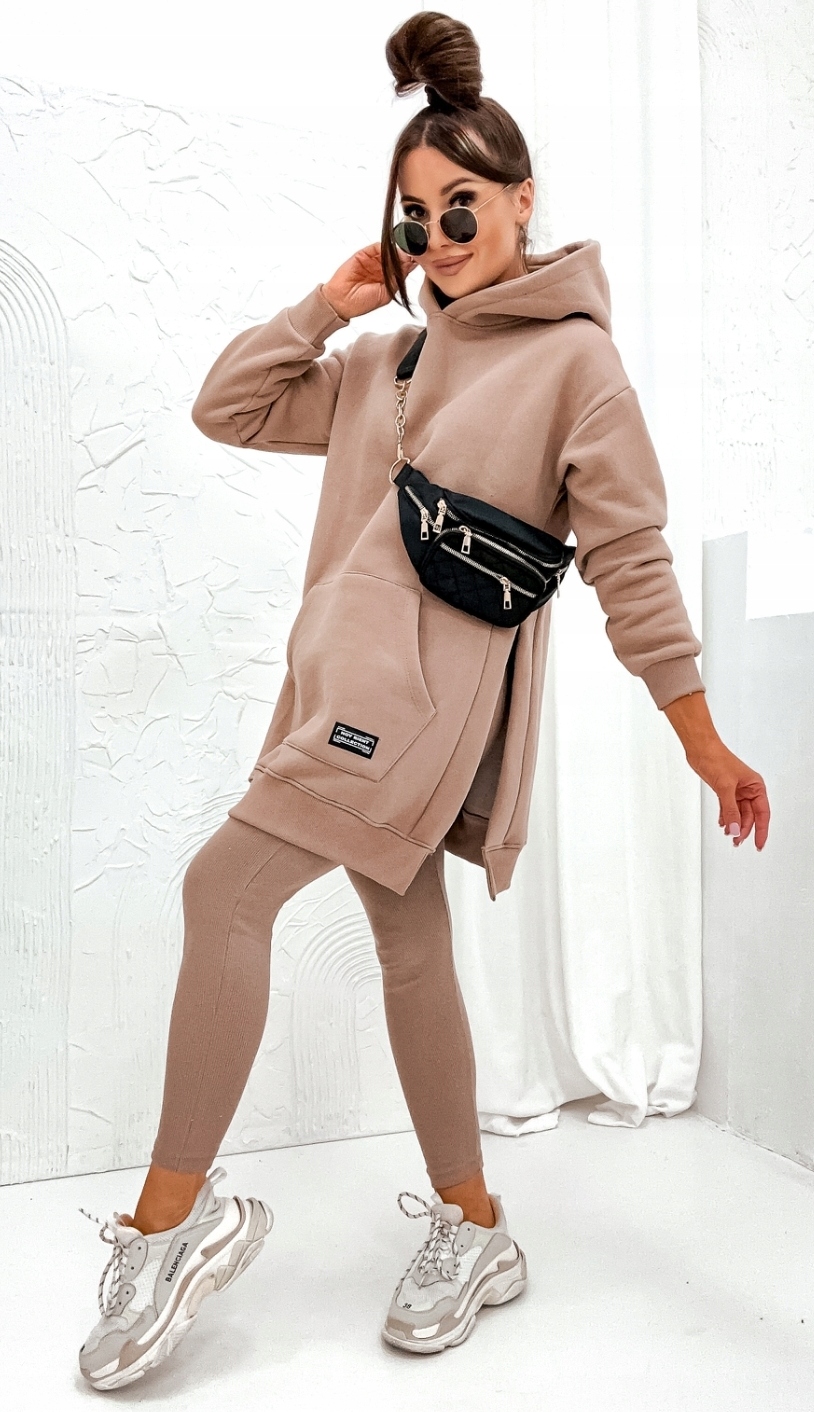 Комплект из двух предметов, состоящий из ТЕПЛОЙ ДЛИННОЙ СВИТШОТЫ С БОКОВЫМИ РАЗРЕЗАМИ и леггинсов в рубчик, - идеальный наряд для женщин, ценящих модный и удобный стиль. Толстовка с длинными рукавами и капюшоном обеспечит комфорт и тепло в холодные дни и в то же время придаст характер всему образу, а леггинсы в рубчик смогут добавить утонченную элегантность и выделиться из толпы.