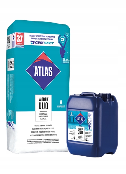 ATLAS WODER DUO представляет собой двухкомпонентную композицию, полученную путем смешивания в весовом соотношении 3:1 компонента А (сухая серая смесь, содержащая цемент, наполнители и модифицирующие добавки) и компонента Б (белая эмульсия, содержащая синтетические смолы и модифицирующие добавки)