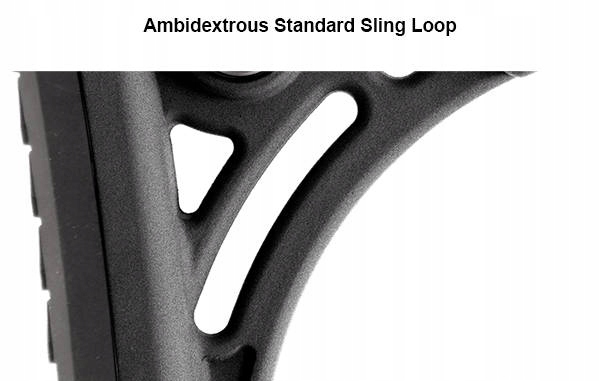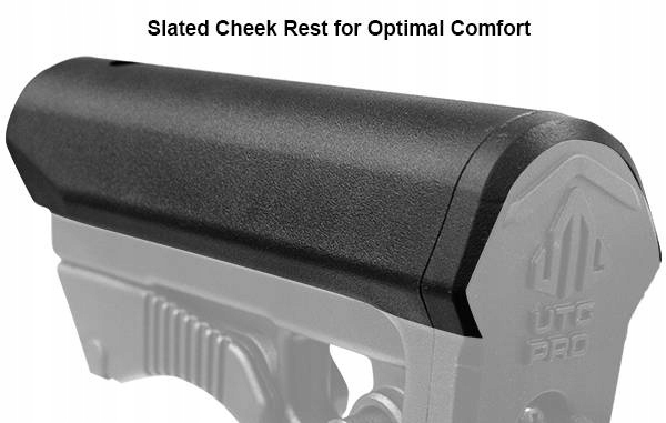 Приклад имеет шестипозиционный замок, двустороннее быстросъемное отверстие и проушину для ремня шириной 36 мм. Адаптирован к скулам UTG, благодаря своей конструкции подойдет как для длинных, так и для коротких расстановок.