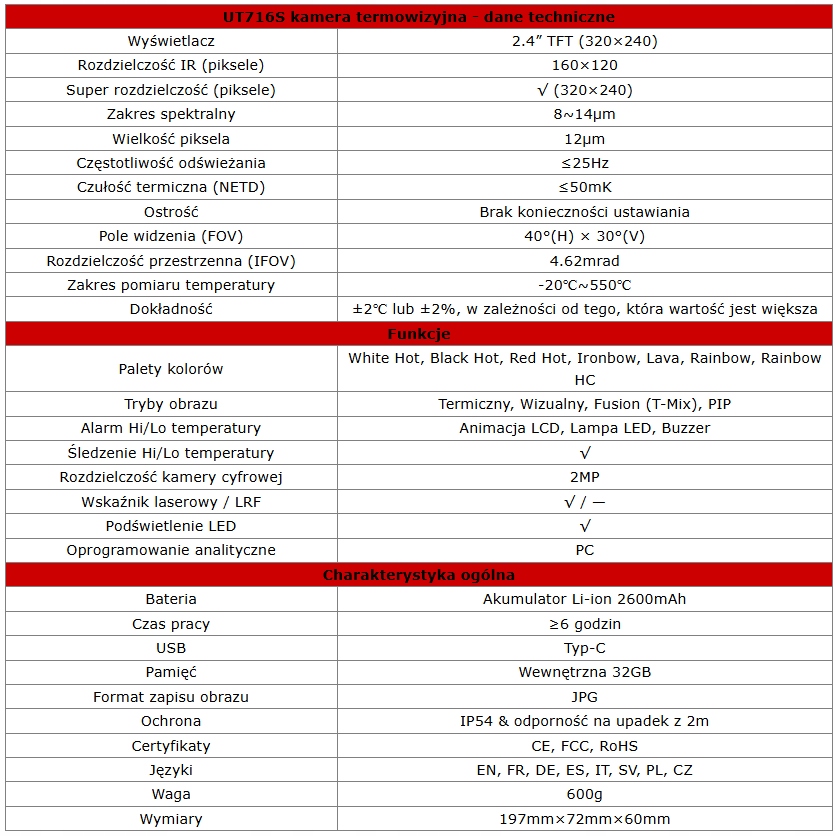 UT716S Теплоизображение камера 160x120 un-t h1>