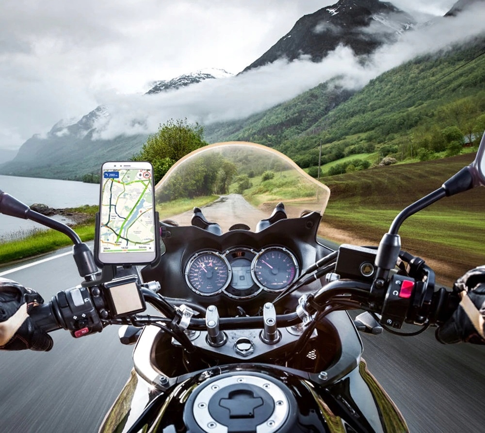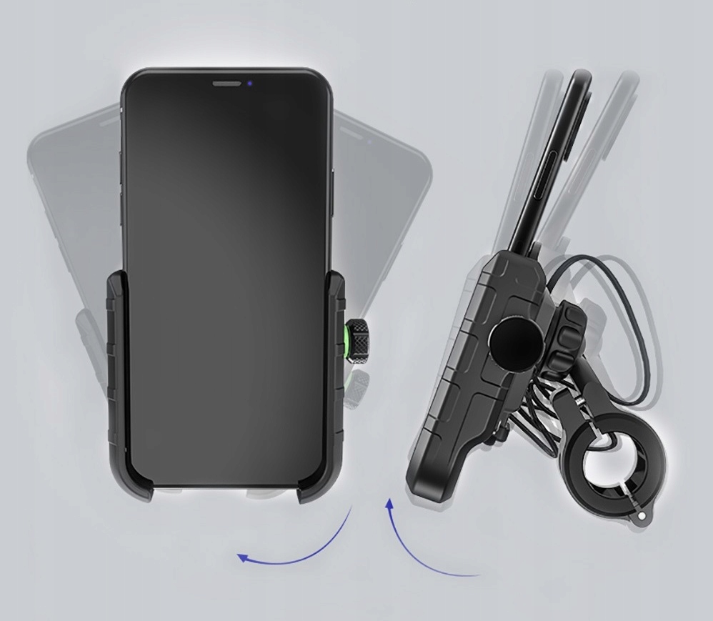 Держатель для телефона сделан очень добротно. Имеет 3 направляющие, которые плотно обхватывают руки. Огромные возможности регулировки телефона от 3,5 до 6,5 дюймов сделают продукт полезным, даже если мы поменяем телефон на другой. Он может вместить любое устройство, например GPS, шириной 58-90 мм. Благодаря шаровому шарниру с регулировкой вращения на 360 градусов вы можете идеально настроить ручку под свои нужды. Благодаря двум держателям в комплекте мы можем закрепить держатель на руль диаметром 22-32 мм, под зеркало или на любой винт на руле до 10 мм.