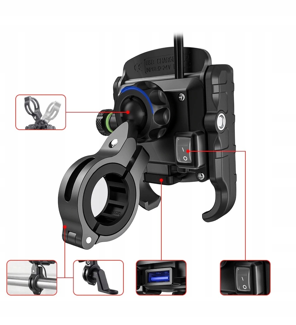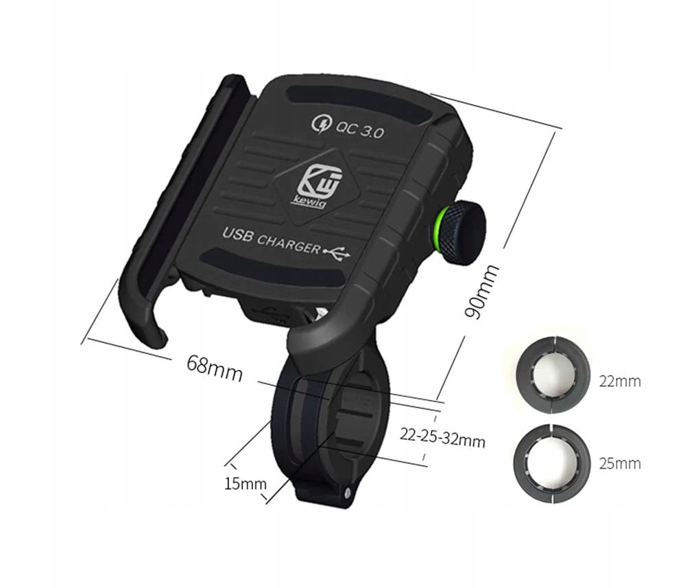 УТРИМАЛЬНИК ДЛЯ МОТОЦИКЛНОГО ТЕЛЕФОНА USB QC3.0 3.5-6.5