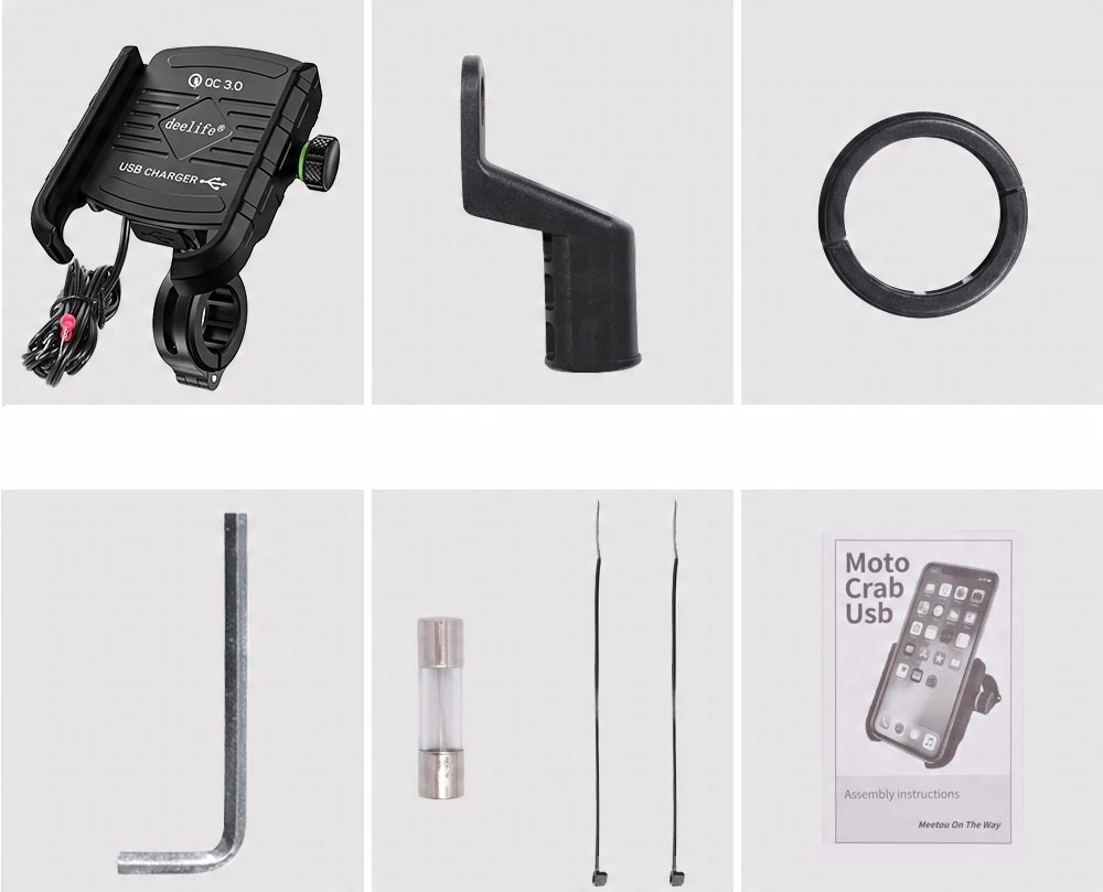 Самым главным преимуществом держателя является водонепроницаемый USB-порт быстрой зарядки QC3.0, благодаря которому ваш телефон никогда не разрядится во время экспедиции. На рукоятке имеется переключатель ВКЛ/ВЫКЛ и кабель длиной около 150 см с проушинами для клемм аккумулятора и предохранителем. Защита от перезаряда и слишком высокого напряжения дополнительно защитит подключенное устройство.