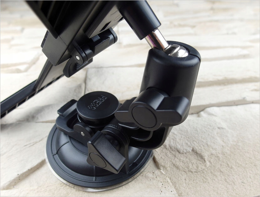 Обратите внимание, что присоска, которая крепит держатель к стеклу, имеет большие размеры. Его диаметр почти 10 см, поэтому оно надежно удерживает стекло – даже если сильно потянуть рукой, не оторвешь; тем более, что он не упадет сам по себе во время вождения.