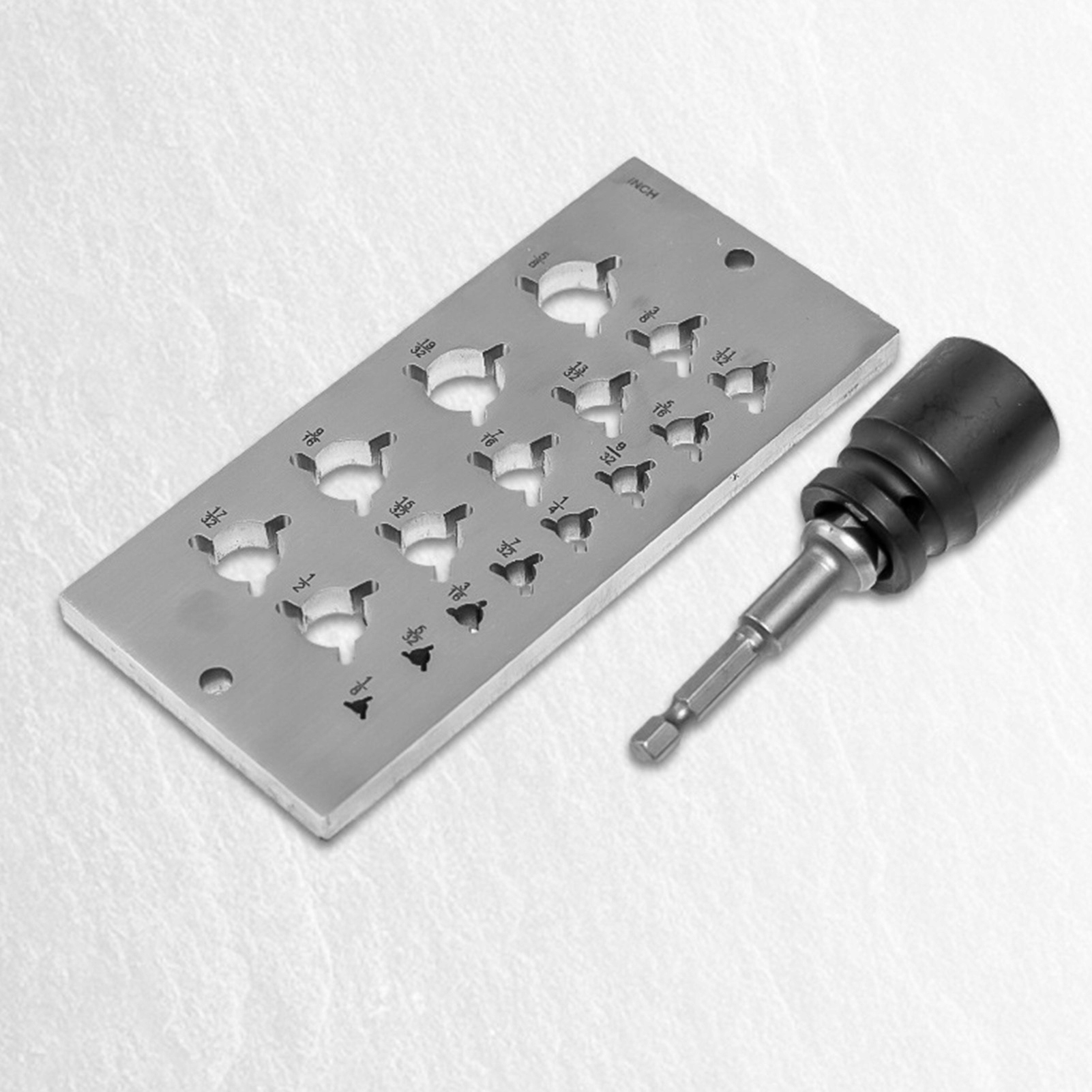 1. Технические характеристики: Режущая пластина для деревообрабатывающих дюбелей имеет 17 отверстий диаметром от 1/8 до 5/8 дюйма с интервалом 1/32 дюйма, что может удовлетворить больше потребностей в изготовлении дюбелей.